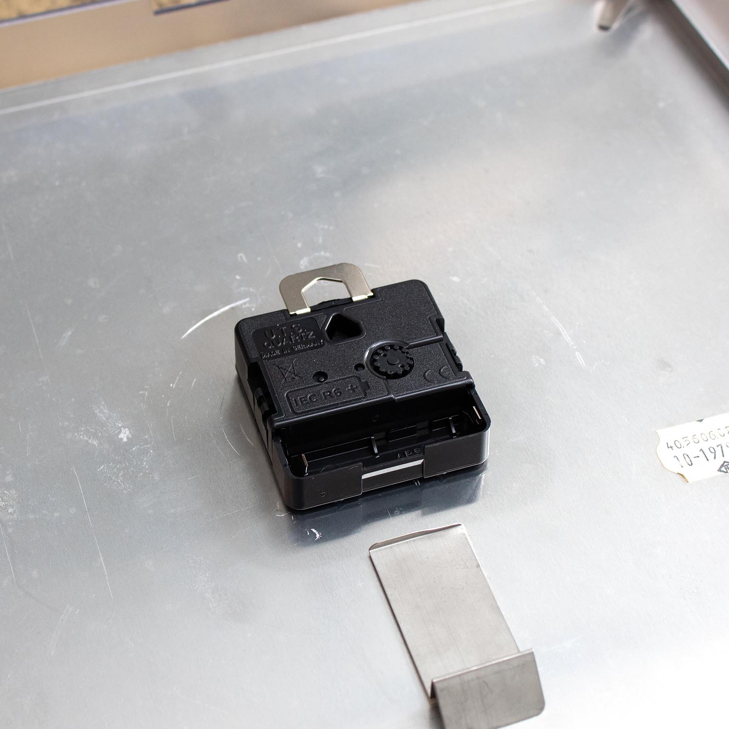 Diese alte Wanduhr war einst eine so genannte Nebenuhr und leistete ihren exakt getakteten Dienst in Fabriken, Industriebetrieben und Bahnhofshallen. Ursprünglich konnte diese Uhr (auch Slave Clock genannt) nur elektronisch mit einer Mutteruhr betrieben werden. Dies hatte den Zweck, dass wirklich jede Uhr in einer Fabrik auf die Sekunde genau gleich lief. Die vintage Wanduhr könnte deshalb in ihrem urspünglichen Zustand nicht mehr betrieben werden. Wir von JØLG haben sie deshalb mit einem Quarz-Uhrwerk umgebaut; dadurch erhält sie ein zweites Leben und kann nun mit einer normalen AA-Batterie betrieben werden. Ähnlich unserem Motto beim Restaurieren alter Industrielampen, heißt es auch hier: Alte Uhr – neue Technik!
