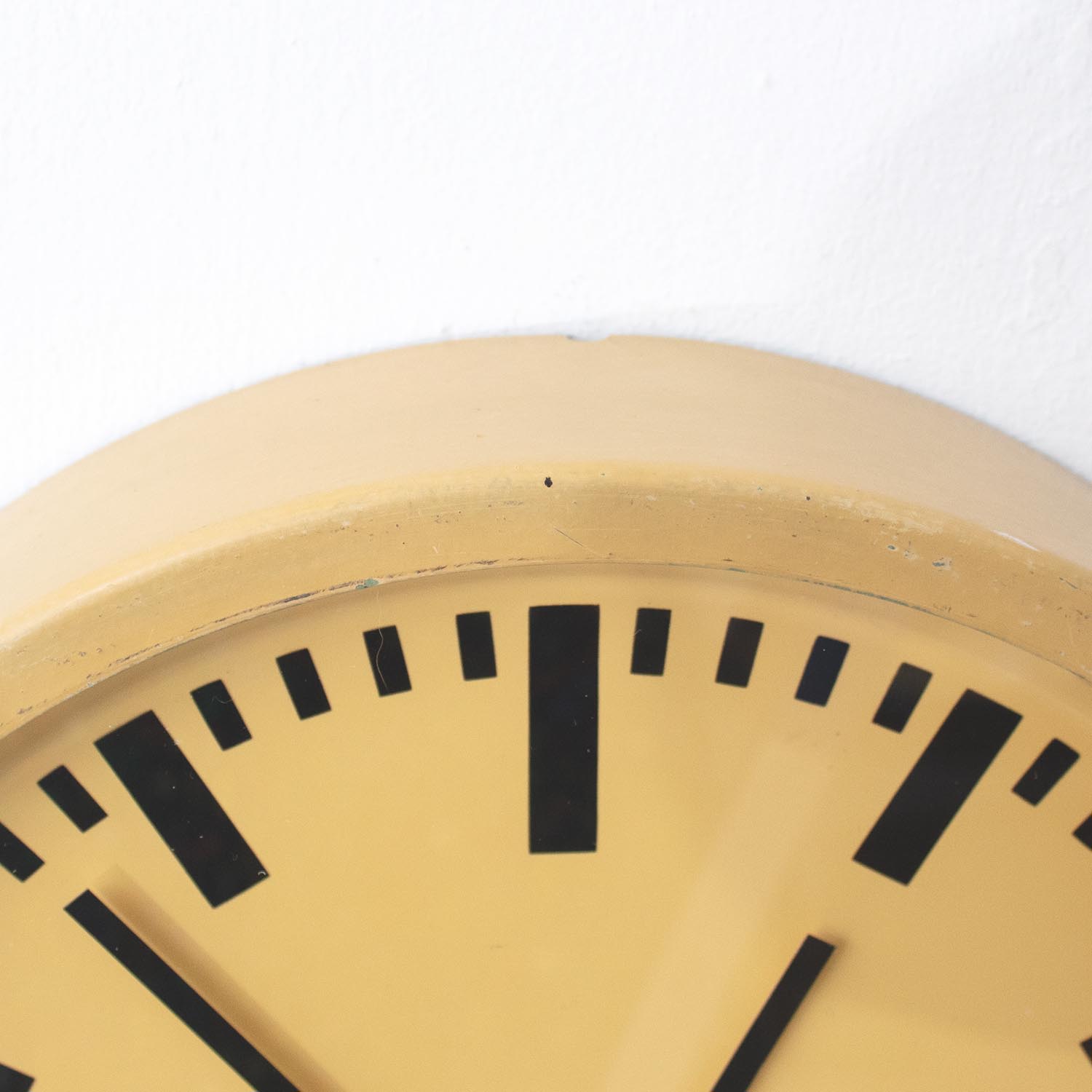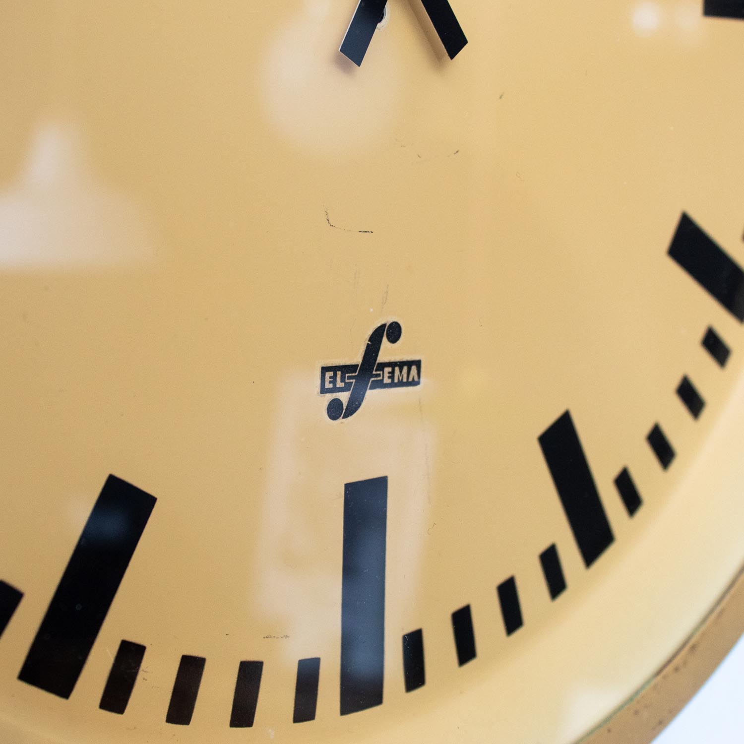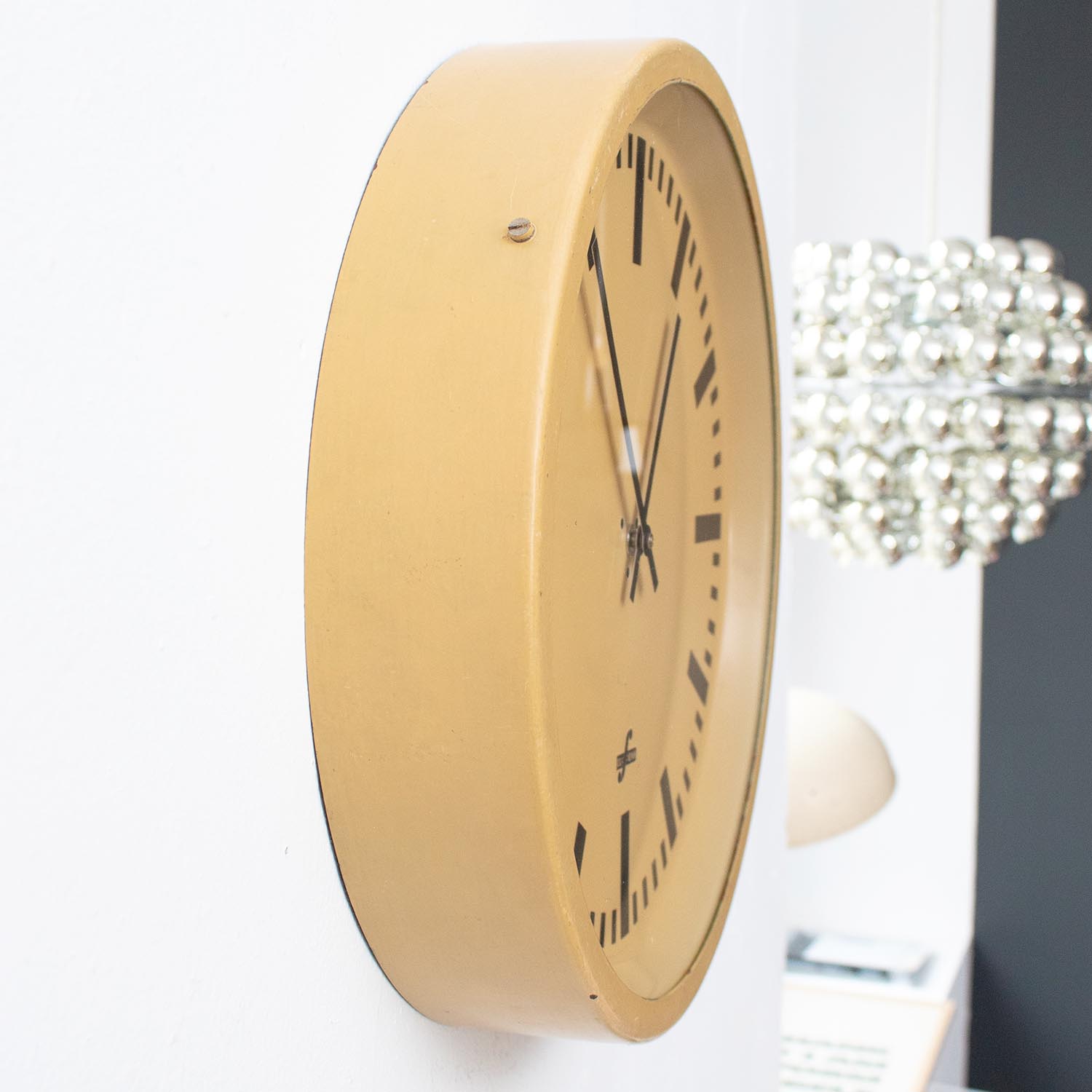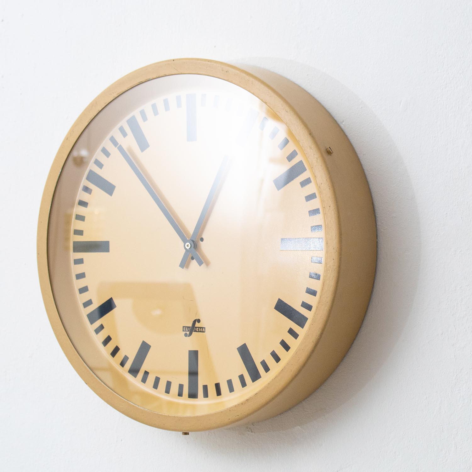Produktinformationen "Alte ELFEMA Fabrikuhr Sandbeige Hammerschlag Ø 37 cm Wanduhr, ehem. DDR"