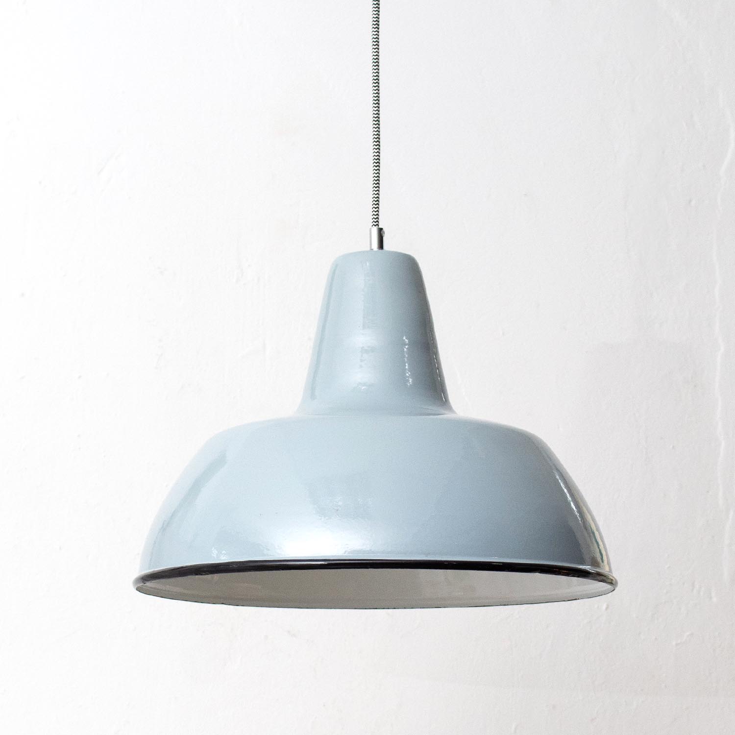 Diese Lampen wurden ursprünglich zur Beleuchtung von Montagehallen und Werkstätten konzipiert, so sorgten Sie ursprünglich für eine gleichmäßige Ausleuchtung von Arbeitsbereichen. Durch die weiße Emaillierung im inneren der Leuchte wird dieser Effekt nochmals verstärkt. Jeder Lampenschirm ist ein Unikat und weist eine unverwechselbare Patina auf. Moin - die Leuchte stammt aus dem hohen Norden, genauer gesagt aus dem Lagerkomplex einer alten Halle in der Speicherstadt. Kühles Eisgrau trifft hier auf eine harmonische Form.