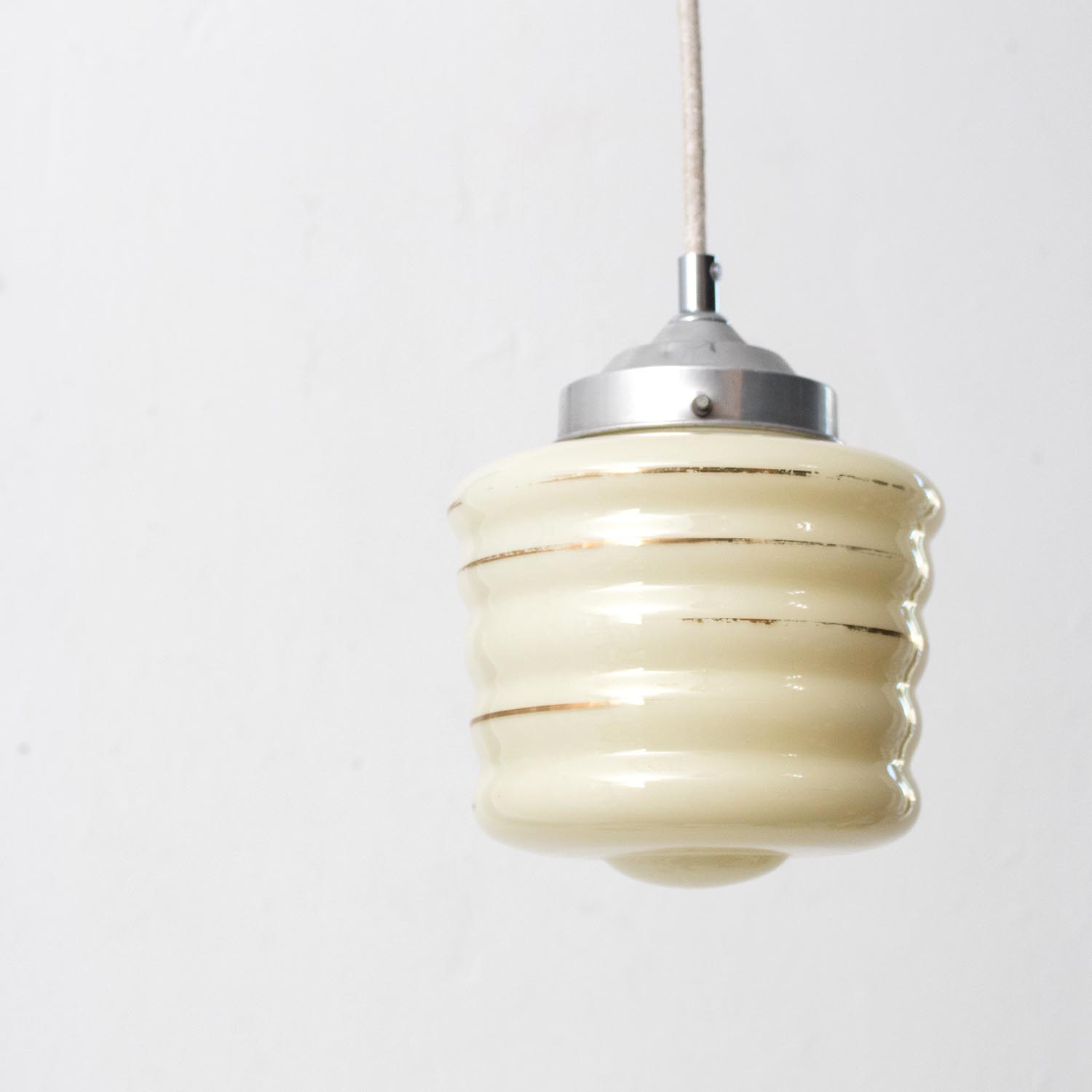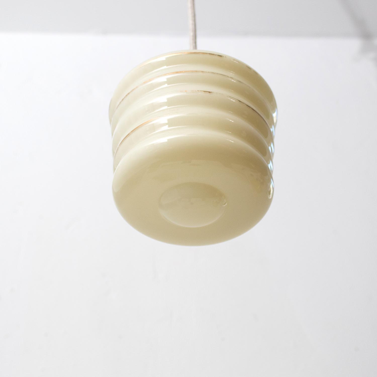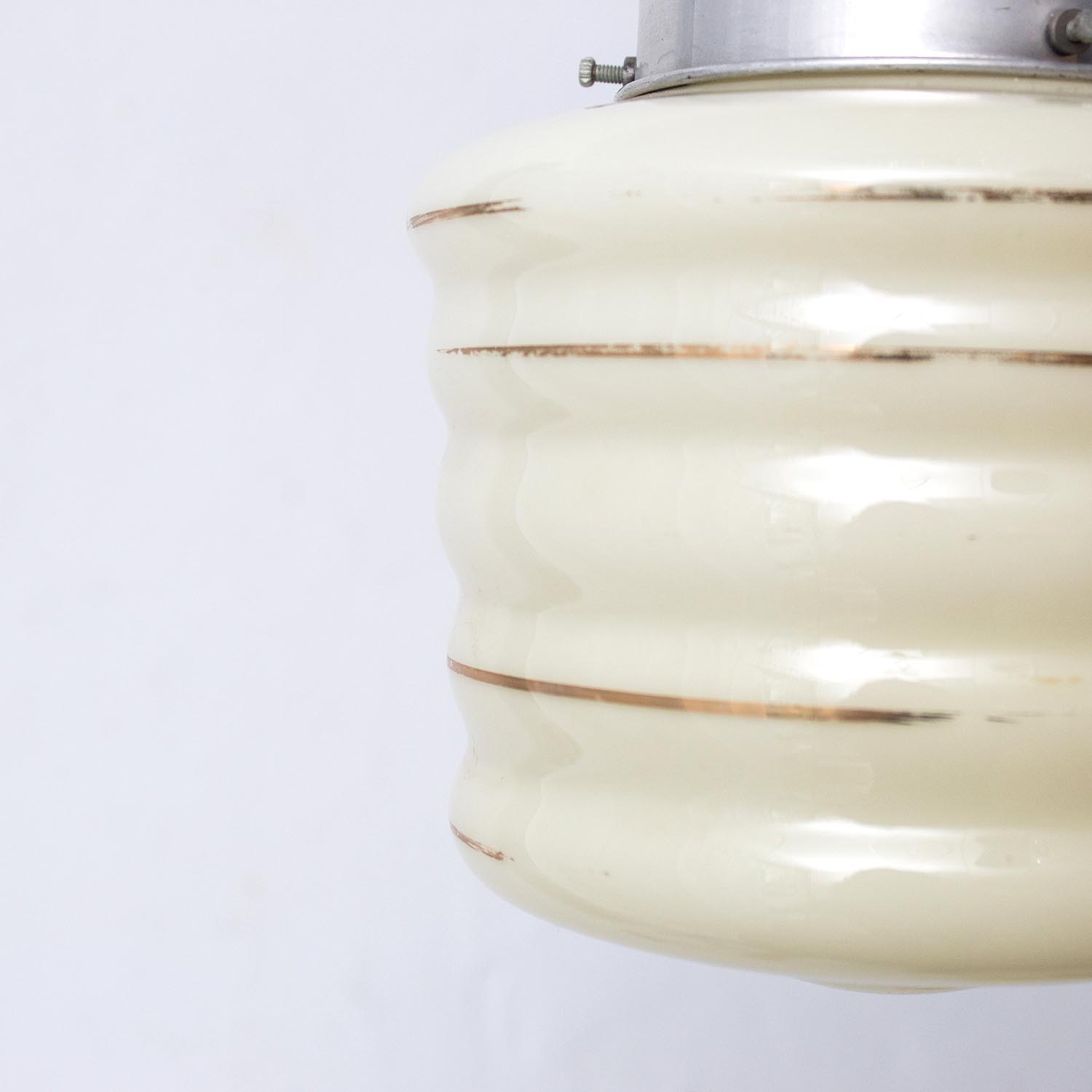 Alte kleine midcentury Glas Hängelampe Ø 14 cm Spritzdekor Linien