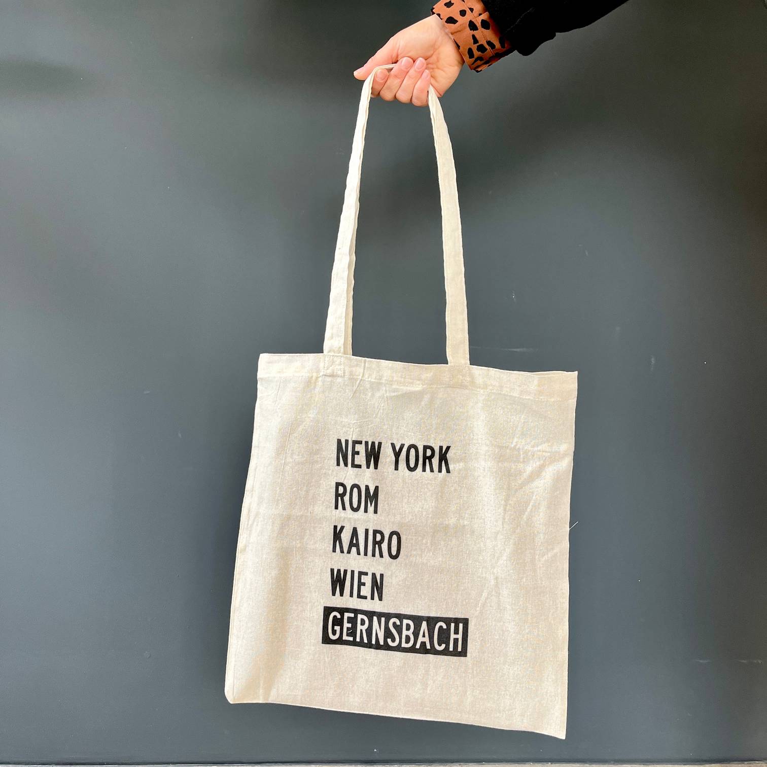 Die Baumwolltasche trägt sich hervorragend in NY, Kairo, Rom und Wien. Aber auch in Gernsbach kann sie mit erhobenem Hauptes getragen werden...
