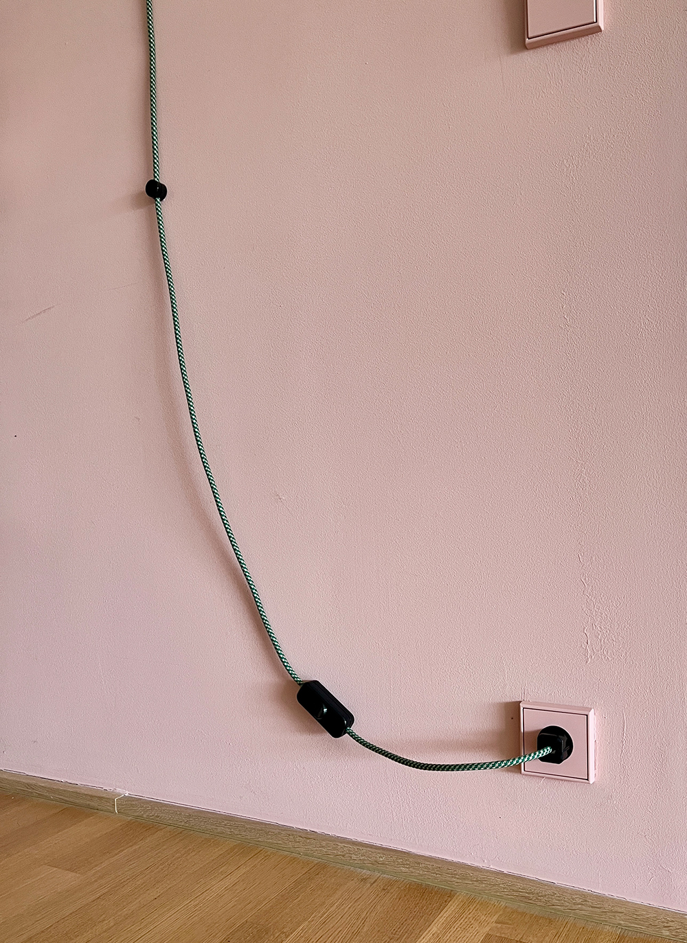 - Entscheidung zwischen Aufputz- und Schnurschalter. Prinzipiell gibt es keinen Unterschied. Der Aufputzschalter wird fest an der Wand verschraubt, der Schnurschalter klemmt zwischen den Kabeln und ist daher etwas schlichter.