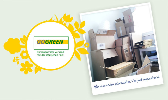 … beziehen wir in unserem Studio grünen Strom, heizen wenig, verzichten so gut es geht auf Plastik und Einwegprodukte und versenden alle unsere Pakete ins In- und Ausland mit GoGreen.