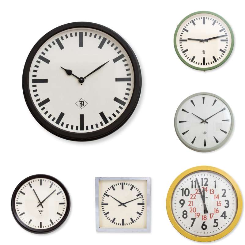 Vorbild für das klare, reduzierte Design der Bahnhofsuhren und Fabrikuhren, wie wir sie heute kennen, war die Schweizer Bahnhofsuhr. Sie wurde 1944 vom Schweizer Ingenieur Hans Hilfiker gestaltet und sollte auch aus größerer Entfernung gut lesbar sein. Die schwarzen Skalenstriche auf weißem Grund sind dabei das Markenzeichen der Schweizer Bahnhofsuhr.