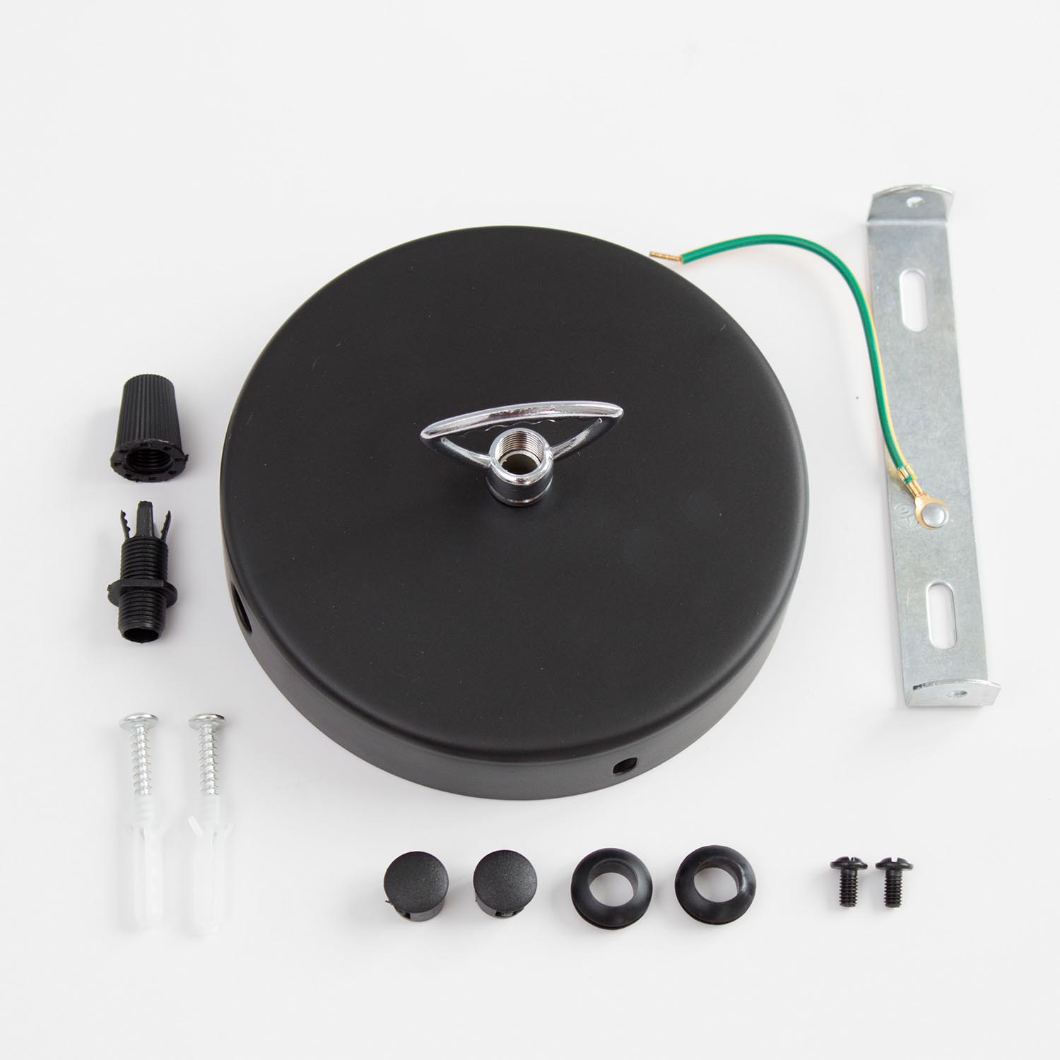 Produktinformationen "Metall Baldachin Schwarz für Kettenaufhängung (mit Seitenauslass) Kettenbaldachin"