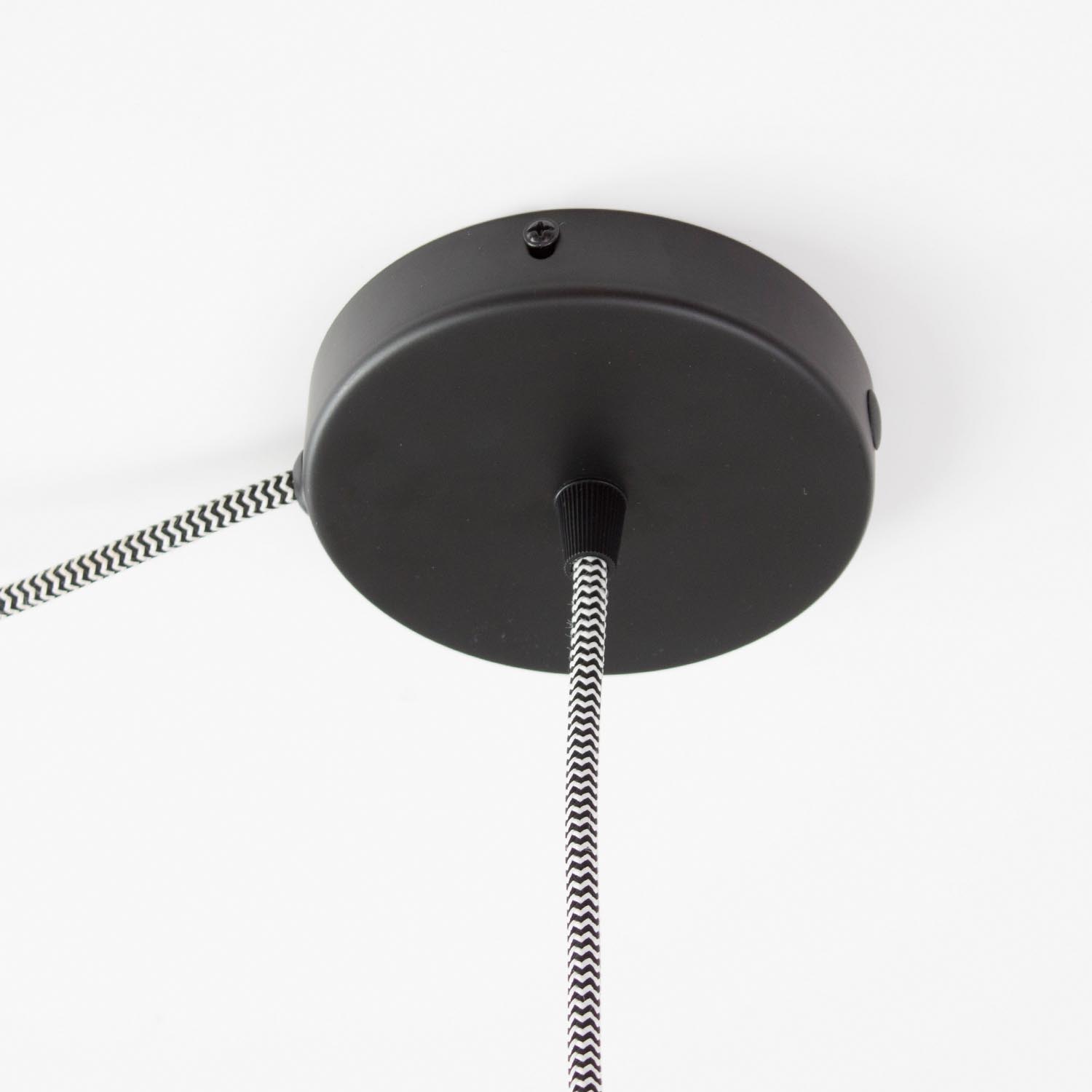 Sollte eure Industrie-Lampe an einer Kette hängen und der Stromanschluss direkt über der Lampe sein, dann findet ihr in unserem Shop einen speziellen Baldachin zur Kettenaufhängung. Da jede Decke eine andere Beschaffenheit hat, informiert euch bitte im Vorfeld welche Dübel ihr verwenden müsst. Das auf dem Bild dargestellte Textilkabel ist im Lieferumfang nicht enthalten.