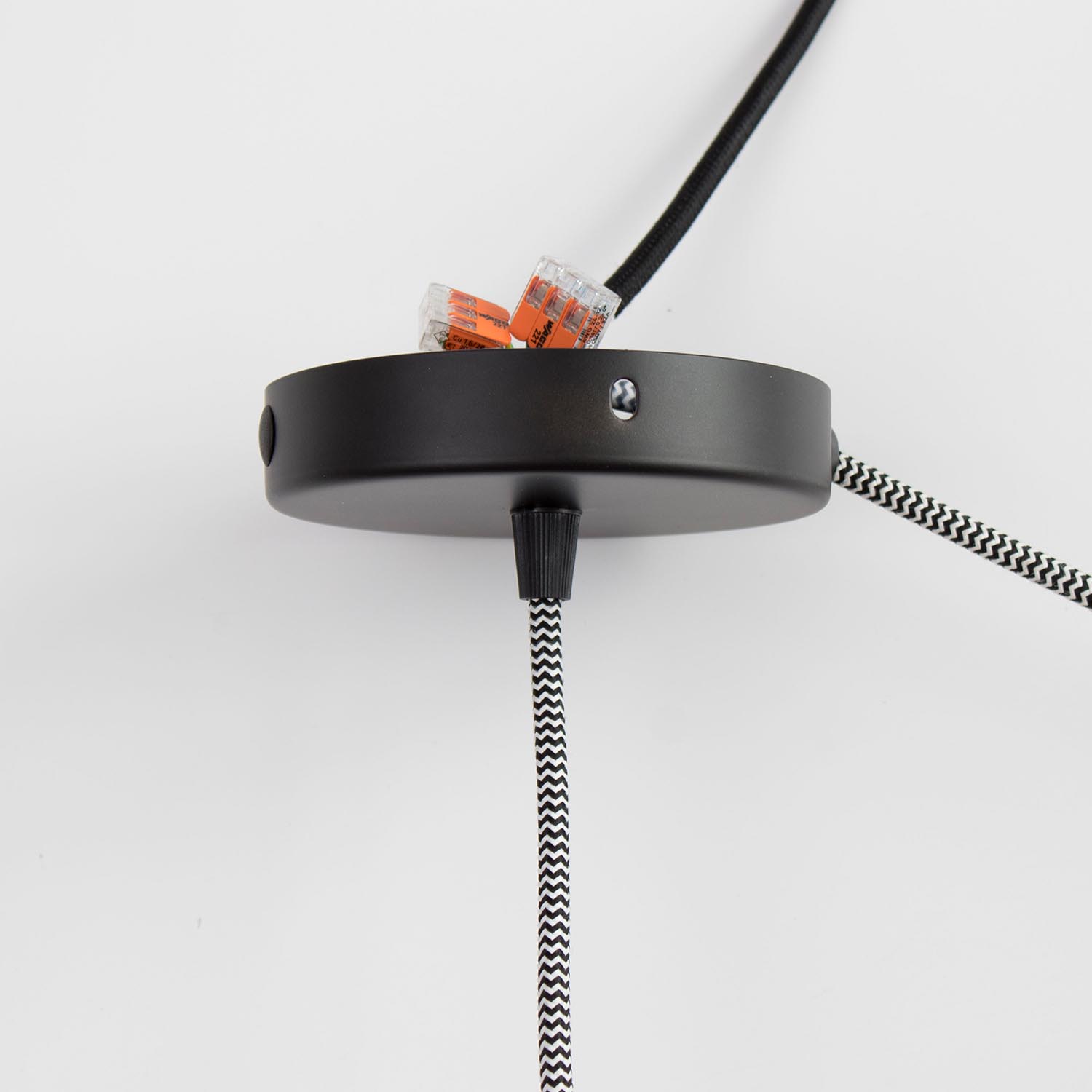 Die Distanzaufhängung kommt dann zum Einsatz, wenn sich der Stromanschluss nicht direkt über deiner Lampe befindet. Mit der so genannten Affenschaukel lässt sich das Kabel an die gewünschte Position im Raum umlenken – ganz unabhängig davon, wo sich der Stromanschluss an der Decke befindet. In der Deckenbefestigung ist eine kleine Schraube um das Kabel zu fixieren, damit es gesichert ist und nicht weiterrutschen kann. Farbe: Weiß oder Schwarz Material: Kunststoff mit Schraub-Zugentlastung Lieferumfang: Distanzaufhängung inkl. passender Schraube und Dübel Maße: Höhe 4 cm, Ø 2 cm - für Kabel bis Ø 8 mm (alle unsere Textilkabel passen) Achtung: Nur für Lampen verwenden, die direkt am Kabel aufgehängt werden können. Maximale Traglast 1,5 kg. Die Distanzaufhängung ist geeignet für alle Textilkabel, die bei unseren JØLG Industrielampen verwendet werden. Jede Decke/Wand hat eine andere Beschaffenheit. Bitte informiere dich deshalb im Fachhandel oder Baumarkt, welche Dübel für deine Decke/Wand geeignet sind. In unserem Magazin findest du viele hilfreiche Tipps, wenn der Stromanschluss nicht dort ist, wo die Lampe abhängen soll, oder wenn du deine Leichtquelle über die Steckdose beziehen möchtest.