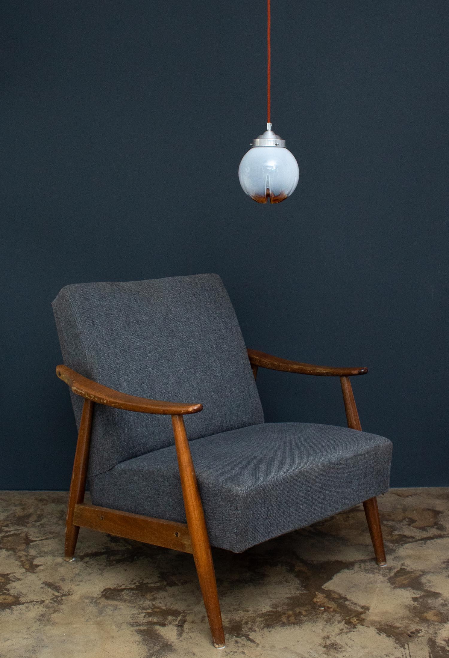 Angesagtes Spritzdekor mit schöner Patina aus den 1950er Jahren. Liebevoll restauriert schmücken diese Vintage-Lampen jetzt Küchen und Esszimmer, Flure und Wohnzimmer, Kinder- und Arbeitszimmer. So eine kleine Glasleuchte macht sich besonders gut als Spot oder Akzentlicht. Patina: Sichtbare Spuren der Zeit Material: Glas Aufhängung: Direkt am Kabel Maße: Ø 14 cm, Höhe 18 cm zzgl. ca 2 cm Fassung Fassung: E27-Fassung** Textilkabel: Länge und Farbe nach deinen Wünschen. Im Grundpreis sind 1,2 Meter Textilkabel enthalten. Was haben wir mit deiner Lampe gemacht?Die Lampenschirme werden sorgfältig gereinigt, dabei wird die Patina so gut es geht erhalten. Anschließend werden die Leuchten komplett neu elektrifiziert, so dass sie den aktuellen Sicherheitsstandards entsprechen.Dein individuelles Licht mit GeschichteUm die Industrielampe zum individuellen Designstück zu machen, kannst du sie mit einem bunten Textilkabel nach deinen Vorstellungen gestalten. Wähle einfach ein Kabel aus und bestimme zusätzlich die ideale Länge des Kabels anhand deiner Gegebenheiten vor Ort. Im Grundpreis sind 1.2 m Kabel enthalten. Bei der Auswahl kannst du zwischen Längen bis 5 m wählen - auf direkte Nachfrage können wir auch ein deutlich längeres Kabel anbringen. Die Lampe richtig installierenUm die Elektroinstallation an der Decke zu verdecken kannst du entweder einen weißen oder schwarzen Baldachin aus Hartplastik (Ø 65 mm – Höhe 67 mm) wählen - dieser ist im Preis enthalten. Weitere Baldachine (z. B. Porzellan- oder Abzweig-Baldachine) sind im Shop verfügbar. In unserem Magazin findest du eine reihe hilfreicher Tipps, auch gerade dann wenn der Stromanschluss nicht an der Stelle ist, an dem die Lampe hängen soll.Wie kommt deine Lampe zu dir?Deine restaurierte JØLG Leuchte kommt fertig angeschlossen, nach deinen individuellen Vorgaben und inkl. einer Anleitung mit Tipps & Tricks, sicher und umweltfreundlich verpackt zu dir nach Hause. Wir versenden ausschließlich mit DHL GoGreen. Im Lieferumfang sind keine Leuchtmittel enthalten. Im Shop findest du aber eine passende Auswahl an LED-Leuchtmitteln. Achte hierbei auf die passende Größe des Lampensockels (E14 oder E27).Viel Freude und Inspiration beim Auswählen und Zusammenstellen deiner Lampe wünscht dir dein Team von JØLG.*Da es sich bei den Industrieleuchten um gebrauchte Antiquitäten handelt, unterliegen die Produkte gem. § 25a UStG der Differenzbesteuerung. Somit ist für diese Artikel kein gesonderter Umsatzsteuerausweis möglich.**Die Leuchte ist geeignet für Leuchtmittel aller Energieklassen. Glühlampen und Halogenlampen bis 60 Watt.