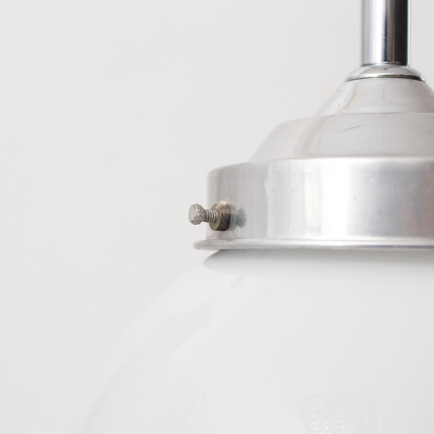 Diese sachlichen Opalglas-Kugelleuchten stammen aus alten französischen Wohnhäusern. Opalglas (auch Kryolithglas genannt) sieht aus wie milchiges oder satiniertes Glas, mit dem Unterschied, dass Opalglas mehr Glanz hat. Opalglas ist ein lichtdurchlässiges, aber nicht durchsichtiges Glas. Das durchscheinende Licht ist sanft und blendet nicht. Mit Opalglas versehene Leuchten wurden bis ca. 1920 nur im industriellen Bereich eingesetzt. 1923 entwarfen die beiden Produktdesigner Wilhelm Wagenfeld und Carl Jakob Jucker in der Metallwerkstatt des Weimarer Bauhaus die erste Leuchte, die durch das verwendete Opalglas gestreutes Licht auch in den Wohnraum brachte. Die „Bauhaus-Leuchte“ ist heute besser bekannt als „Wagenfeld-Leuchte“ und zählt zu den Designklassikern des 20. Jahrhunderts Seit diesem Zeitpunkt hat sich opales Glas – vor allem im späten Art déco - über viele Epochen und Stile hinweg bis heute als modernes und vielseitiges Glas im Leuchtendesign etabliert. Patina: Wenige Spuren der Zeit Material: Opalglas Farbe: Weiß Aufhängung: Direkt am Kabel Fundort: Frankreich, von ca. 1930-1950 Maße: Ø 20 cm, Höhe mit Kappe 23 cm zzgl. ca. 2 cm Fassung Fassung: E27-Fassung** Textilkabel: Länge und Farbe nach deinen Wünschen. Im Grundpreis sind 1,2 Meter Textilkabel enthalten. Was haben wir mit deiner Lampe gemacht?Die Lampenschirme werden sorgfältig gereinigt, dabei wird die Patina so gut es geht erhalten. Anschließend werden die Leuchten komplett neu elektrifiziert, so dass sie den aktuellen Sicherheitsstandards entsprechen.Dein individuelles Licht mit GeschichteUm die Industrielampe zum individuellen Designstück zu machen, kannst du sie mit einem bunten Textilkabel nach deinen Vorstellungen gestalten. Wähle einfach ein Kabel aus und bestimme zusätzlich die ideale Länge des Kabels anhand deiner Gegebenheiten vor Ort. Im Grundpreis sind 1.2 m Kabel enthalten. Bei der Auswahl kannst du zwischen Längen bis 5 m wählen - auf direkte Nachfrage können wir auch ein deutlich längeres Kabel anbringen. Die Lampe richtig installierenUm die Elektroinstallation an der Decke zu verdecken kannst du entweder einen weißen oder schwarzen Baldachin aus Hartplastik (Ø 65 mm – Höhe 67 mm) wählen - dieser ist im Preis enthalten. Weitere Baldachine (z. B. Porzellan- oder Abzweig-Baldachine) sind im Shop verfügbar. In unserem Magazin findest du eine reihe hilfreicher Tipps, auch gerade dann wenn der Stromanschluss nicht an der Stelle ist, an dem die Lampe hängen soll.Wie kommt deine Lampe zu dir?Deine restaurierte JØLG Leuchte kommt fertig angeschlossen, nach deinen individuellen Vorgaben und inkl. einer Anleitung mit Tipps & Tricks, sicher und umweltfreundlich verpackt zu dir nach Hause. Wir versenden ausschließlich mit DHL GoGreen. Im Lieferumfang sind keine Leuchtmittel enthalten. Im Shop findest du aber eine passende Auswahl an LED-Leuchtmitteln. Achte hierbei auf die passende Größe des Lampensockels (E14 oder E27).Viel Freude und Inspiration beim Auswählen und Zusammenstellen deiner Lampe wünscht dir dein Team von JØLG.*Da es sich bei den Industrieleuchten um gebrauchte Antiquitäten handelt, unterliegen die Produkte gem. § 25a UStG der Differenzbesteuerung. Somit ist für diese Artikel kein gesonderter Umsatzsteuerausweis möglich.**Die Leuchte ist geeignet für Leuchtmittel aller Energieklassen. Glühlampen und Halogenlampen bis 60 Watt.