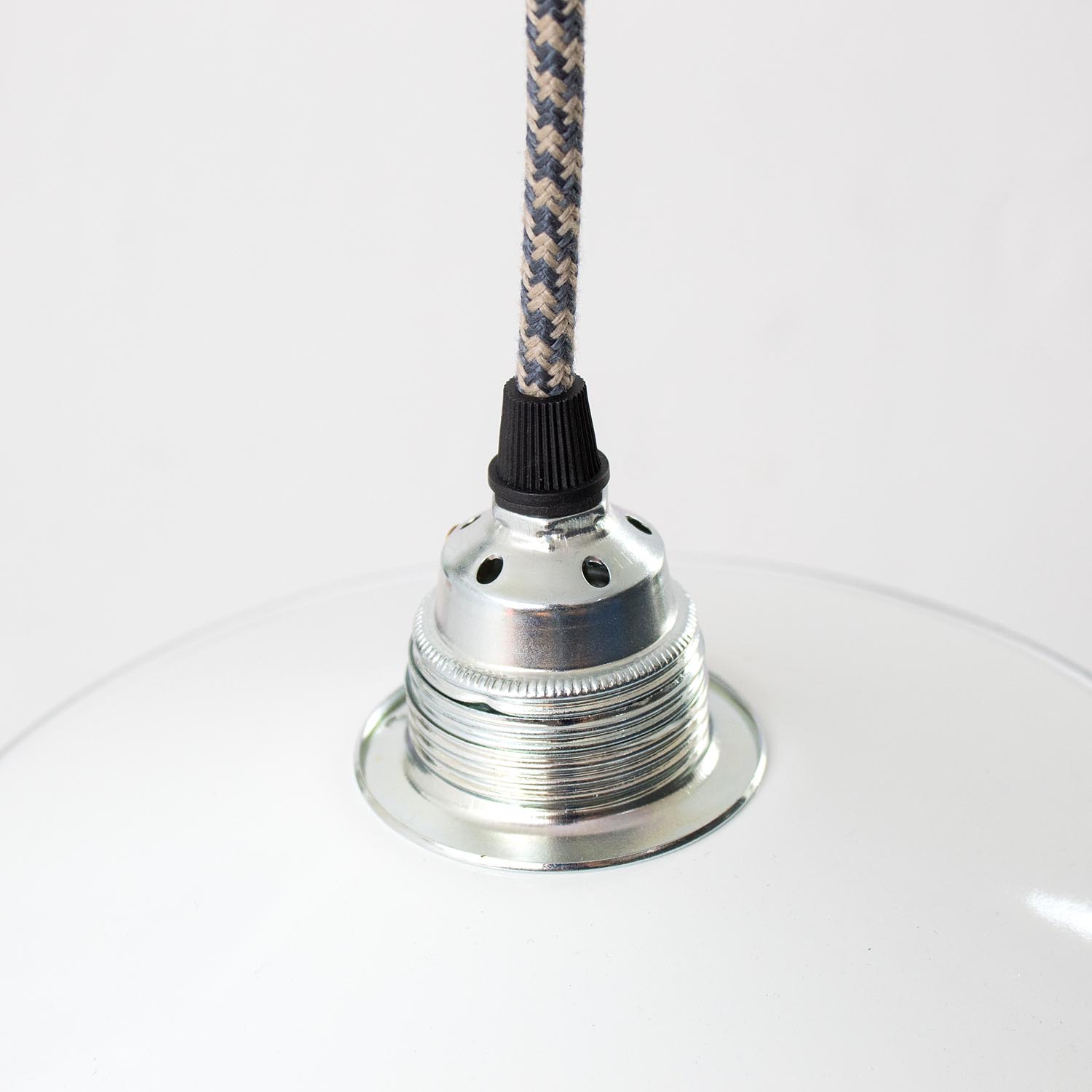 Um die Elektroinstallation an der Decke zu verdecken kannst du entweder einen weißen oder schwarzen Baldachin aus Hartplastik (Ø 65 mm – Höhe 67 mm) wählen - dieser ist im Preis enthalten. Weitere Baldachine (z. B. Porzellan- oder Abzweig-Baldachine) sind im Shop verfügbar. In unserem Magazin findest du eine reihe hilfreicher Tipps, auch gerade dann wenn der Stromanschluss nicht an der Stelle ist, an dem die Lampe hängen soll.