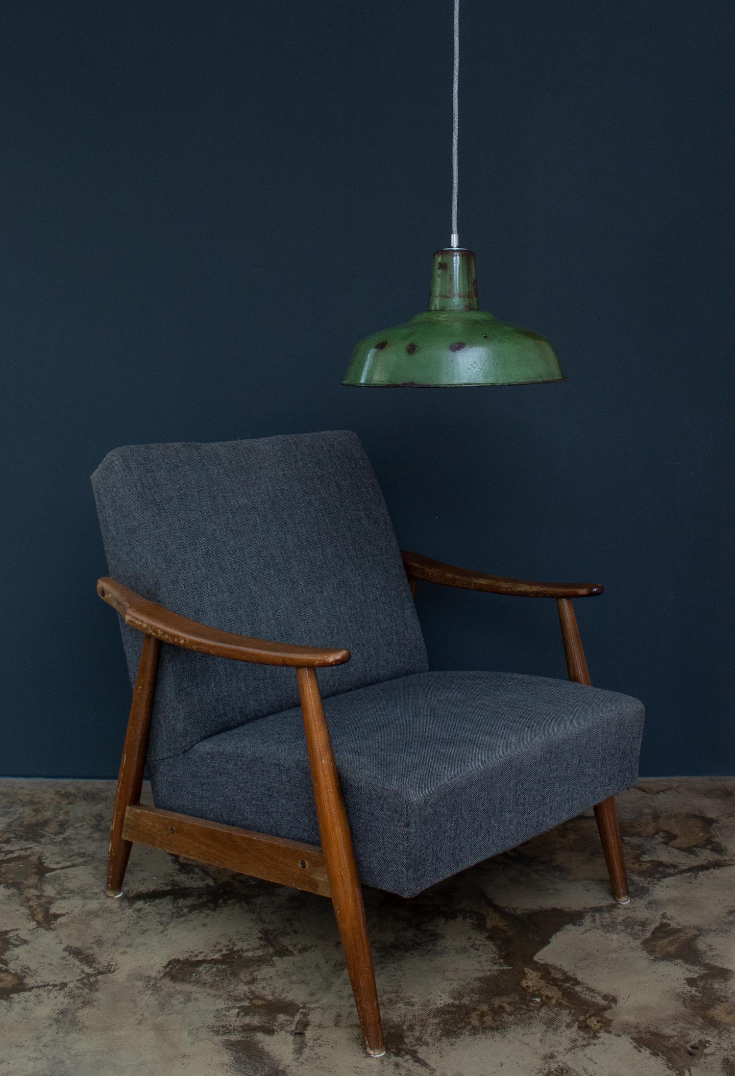 Aus alten Fabriken, Werkstätten und Scheunen in Frankreich und ganz Europa geborgen, bringt jede JØLG-Industrieleuchte ihre eigene Geschichte mit in deine vier Wände. Jeder Lampenschirm ist ein Unikat und weist eine unverwechselbare Patina auf. Patina: Sichtbare Spuren der Zeit Material: Emailliertes Metall Farbe: Außen warmes sattes Grün, Innen Weiß Herkunft/Alter: ZAOS Polen, ca. 1950 - 1960 Aufhängung: Direkt am Kabel Maße: Ø 33 cm, Höhe 22 cm zzgl. ca 3 cm Aufhängung Fassung: E27-Fassung** Textilkabel: Länge und Farbe nach deinen Wünschen. Im Grundpreis sind 1,2 Meter Textilkabel enthalten. Was haben wir mit deiner Lampe gemacht?Die Lampenschirme werden sorgfältig gereinigt, dabei wird die Patina so gut es geht erhalten. Anschließend werden die Leuchten komplett neu elektrifiziert, so dass sie den aktuellen Sicherheitsstandards entsprechen.Dein individuelles Licht mit GeschichteUm die Industrielampe zum individuellen Designstück zu machen, kannst du sie mit einem bunten Textilkabel nach deinen Vorstellungen gestalten. Wähle einfach ein Kabel aus und bestimme zusätzlich die ideale Länge des Kabels anhand deiner Gegebenheiten vor Ort. Im Grundpreis sind 1.2 m Kabel enthalten. Bei der Auswahl kannst du zwischen Längen bis 5 m wählen - auf direkte Nachfrage können wir auch ein deutlich längeres Kabel anbringen. Die Lampe richtig installierenUm die Elektroinstallation an der Decke zu verdecken kannst du entweder einen weißen oder schwarzen Baldachin aus Hartplastik (Ø 65 mm – Höhe 67 mm) wählen - dieser ist im Preis enthalten. Weitere Baldachine (z. B. Porzellan- oder Abzweig-Baldachine) sind im Shop verfügbar. In unserem Magazin findest du eine reihe hilfreicher Tipps, auch gerade dann wenn der Stromanschluss nicht an der Stelle ist, an dem die Lampe hängen soll.Wie kommt deine Lampe zu dir?Deine restaurierte JØLG Leuchte kommt fertig angeschlossen, nach deinen individuellen Vorgaben und inkl. einer Anleitung mit Tipps & Tricks, sicher und umweltfreundlich verpackt zu dir nach Hause. Wir versenden ausschließlich mit DHL GoGreen. Im Lieferumfang sind keine Leuchtmittel enthalten. Im Shop findest du aber eine passende Auswahl an LED-Leuchtmitteln. Achte hierbei auf die passende Größe des Lampensockels (E14 oder E27).Viel Freude und Inspiration beim Auswählen und Zusammenstellen deiner Lampe wünscht dir dein Team von JØLG.**Die Leuchte ist geeignet für Leuchtmittel aller Energieklassen. Glühlampen und Halogenlampen bis 60 Watt.
