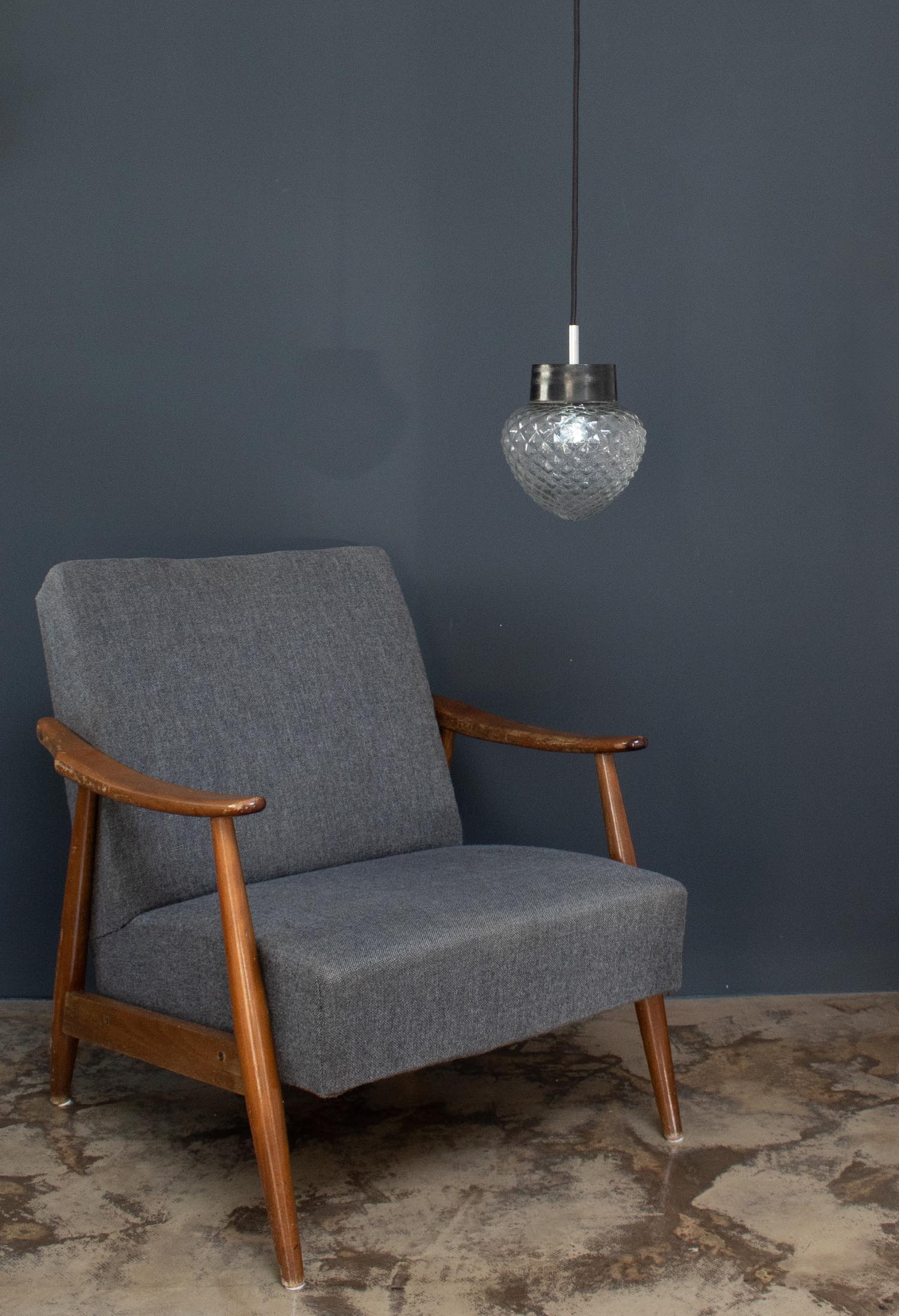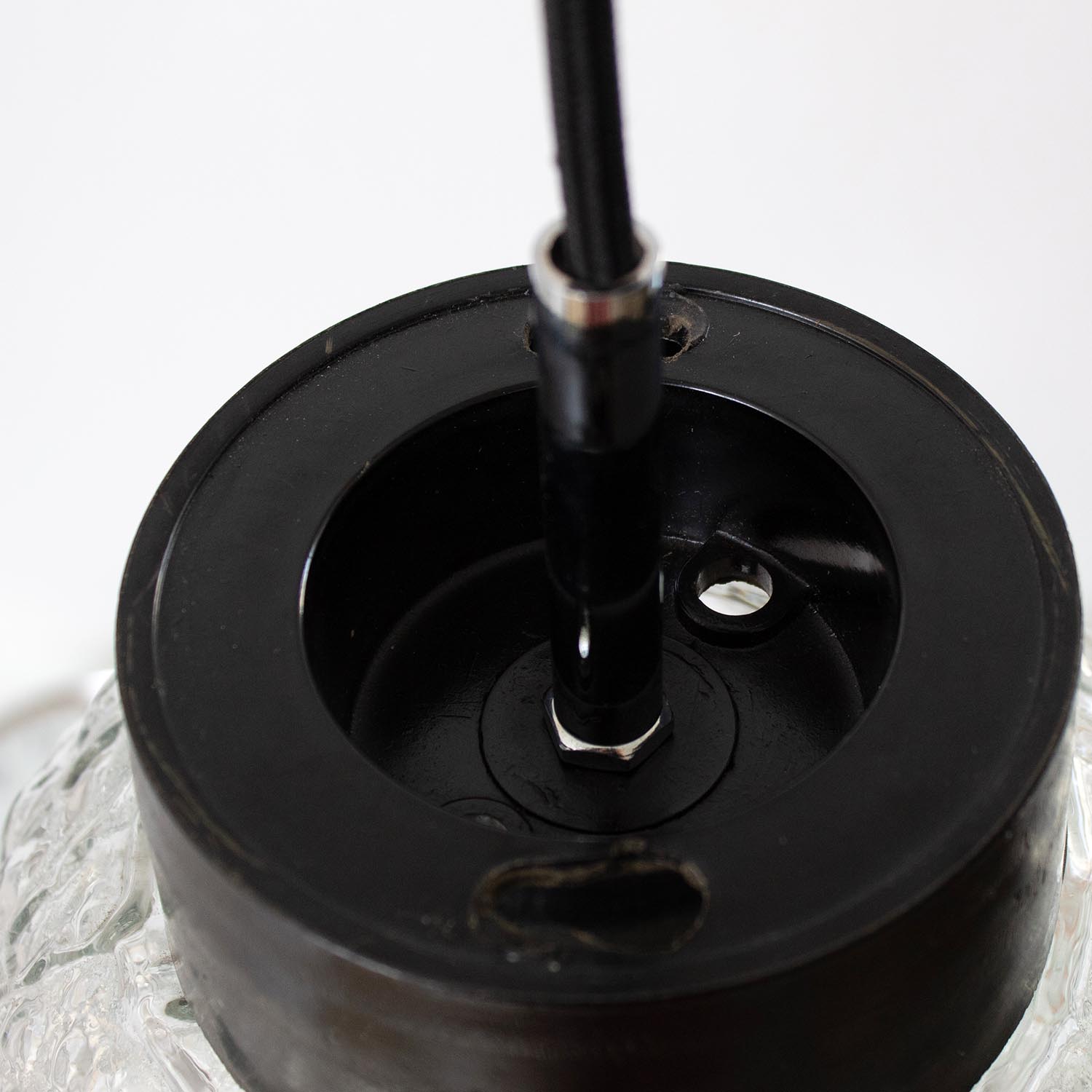 Diese raffinierte Schönheit stammt, wie all unsere JØLG-Industrieleuchten, aus Fabriken, Häusern und Werkstätten in ganz Europa. Frisch restauriert schmücken diese Vintage-Lampen jetzt Küchen und Esszimmer, Flure und Wohnzimmer, Kinder- und Arbeitszimmer. Raffinierte Kristallglasoptik und eine ansprechende Form machen diese Leuchte aus den 1960er Jahren zu einem authentischen Blickfang. Schönes Akzentlicht. Patina: Leichte Spuren der Zeit Material: Glas, Metall/Chrom Farbe: Silber/Chrom/Glas Alter/Herkunft: 1960, stammt aus dem Wohnzimmer einer alten Jugendstilvilla Aufhängung: Direkt am Kabel Maße: Ø 10 cm (unten), Höhe gesamt mit Pendelstab 28 cm Fassung: E27-Fassung** Textilkabel: Länge und Farbe nach deinen Wünschen. Im Grundpreis sind 1,2 Meter Textilkabel enthalten. Was haben wir mit deiner Lampe gemacht?Die Lampenschirme werden sorgfältig gereinigt, dabei wird die Patina so gut es geht erhalten. Anschließend werden die Leuchten komplett neu elektrifiziert, so dass sie den aktuellen Sicherheitsstandards entsprechen.Dein individuelles Licht mit GeschichteUm die Industrielampe zum individuellen Designstück zu machen, kannst du sie mit einem bunten Textilkabel nach deinen Vorstellungen gestalten. Wähle einfach ein Kabel aus und bestimme zusätzlich die ideale Länge des Kabels anhand deiner Gegebenheiten vor Ort. Im Grundpreis sind 1.2 m Kabel enthalten. Bei der Auswahl kannst du zwischen Längen bis 5 m wählen - auf direkte Nachfrage können wir auch ein deutlich längeres Kabel anbringen. Die Lampe richtig installierenUm die Elektroinstallation an der Decke zu verdecken kannst du entweder einen weißen oder schwarzen Baldachin aus Hartplastik (Ø 65 mm – Höhe 67 mm) wählen - dieser ist im Preis enthalten. Weitere Baldachine (z. B. Porzellan- oder Abzweig-Baldachine) sind im Shop verfügbar. In unserem Magazin findest du eine reihe hilfreicher Tipps, auch gerade dann wenn der Stromanschluss nicht an der Stelle ist, an dem die Lampe hängen soll.Wie kommt deine Lampe zu dir?Deine restaurierte JØLG Leuchte kommt fertig angeschlossen, nach deinen individuellen Vorgaben und inkl. einer Anleitung mit Tipps & Tricks, sicher und umweltfreundlich verpackt zu dir nach Hause. Wir versenden ausschließlich mit DHL GoGreen. Im Lieferumfang sind keine Leuchtmittel enthalten. Im Shop findest du aber eine passende Auswahl an LED-Leuchtmitteln. Achte hierbei auf die passende Größe des Lampensockels (E14 oder E27).Viel Freude und Inspiration beim Auswählen und Zusammenstellen deiner Lampe wünscht dir dein Team von JØLG.*Da es sich bei den Industrieleuchten um gebrauchte Antiquitäten handelt, unterliegen die Produkte gem. § 25a UStG der Differenzbesteuerung. Somit ist für diese Artikel kein gesonderter Umsatzsteuerausweis möglich.**Die Leuchte ist geeignet für Leuchtmittel aller Energieklassen. Glühlampen und Halogenlampen bis 60 Watt.