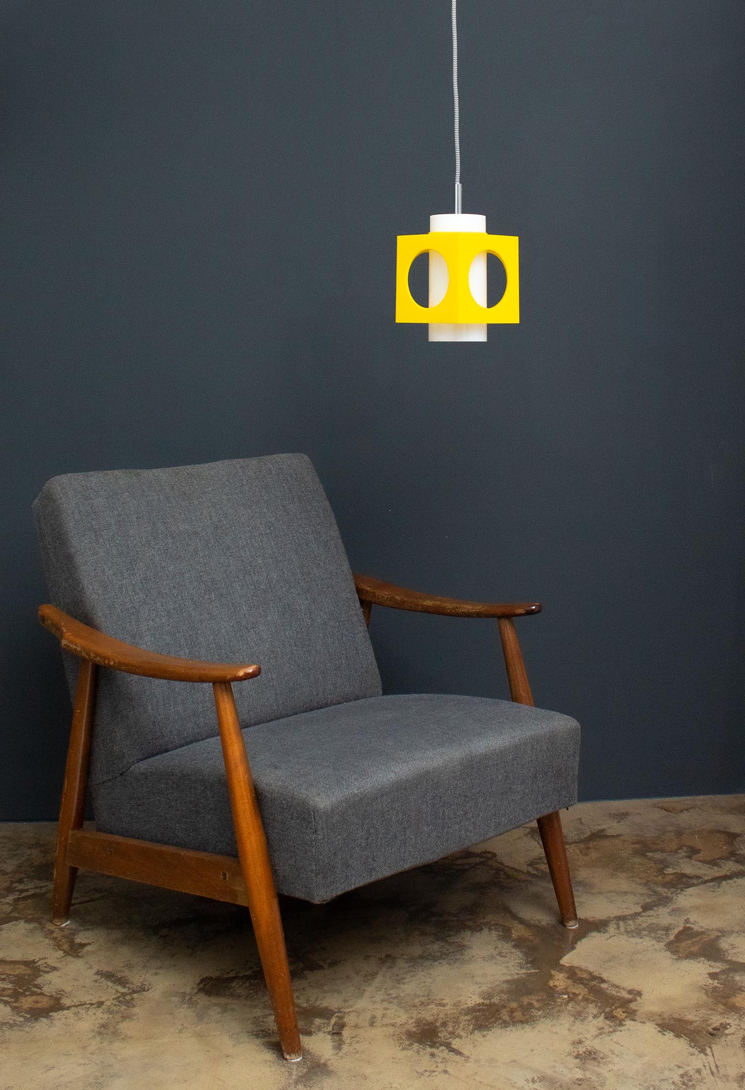 Produktinformationen "Vintage gelbe midcentury quader Hängelampe Spaceage Ø 14 cm"