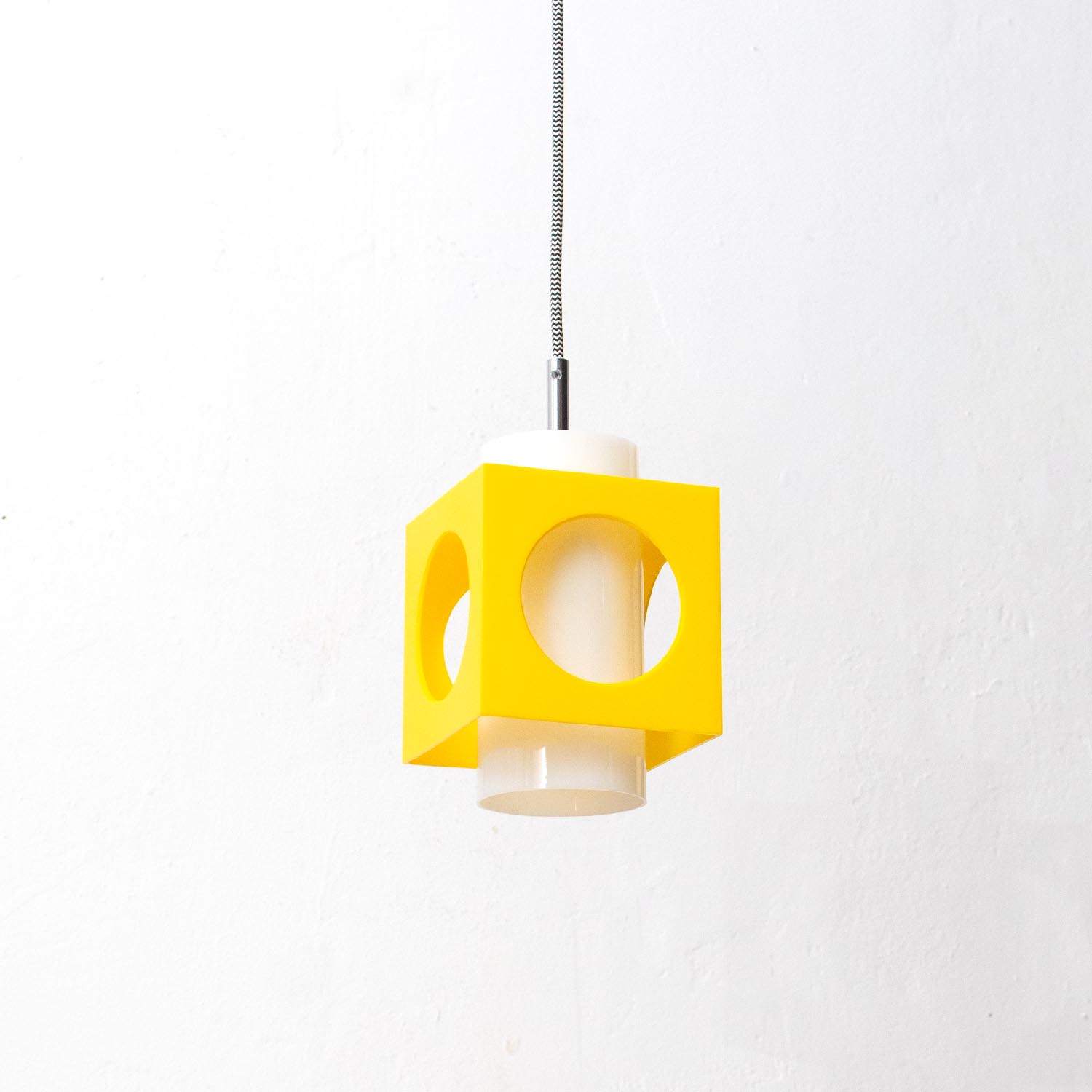 Vintage gelbe midcentury quader Hängelampe Spaceage Ø 14 cm