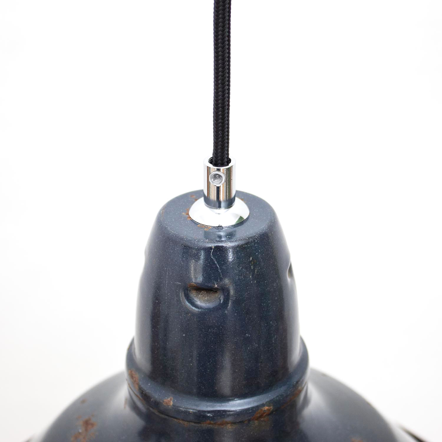 Nachtblaue elegante französische vintage Emaille Hängelampe Ø 30 cm mit Patina