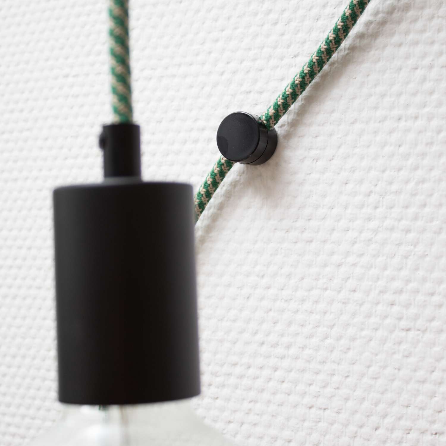 Diese schlichte Kabelführung eignet sich hervorragend zum einfachen Fixieren von Kabeln an der Decke oder der Wand. Kabel bis zu einem Durchmesser von 8 mm passen mühelos durch die Öffnung der Fixierung. So kann das Kabel entweder kunstvoll an Wand und Decke entlang geführt oder aber dezent vom Stromauslass bis zum eigentlichen Platz der Lampe geleitet werden, falls die sog. Affenschaukel nicht gewünscht ist oder die Distanz zwischen Stromanschluss und Lampe so groß ist, dass das Kabel stark durchhängen würde. Farbe: Weiß oder Schwarz Material: Kunststoff Lieferumfang: Kabelführung inkl. passender Schraube und Dübel Maße: ø 2 cm, Höhe ca. 1,5 cm - passend für Kabel bis ø 8 mm (alle unsere Textilkabel passen) In unserem Magazin findest du weitere hilfreiche Tipps zur Installation