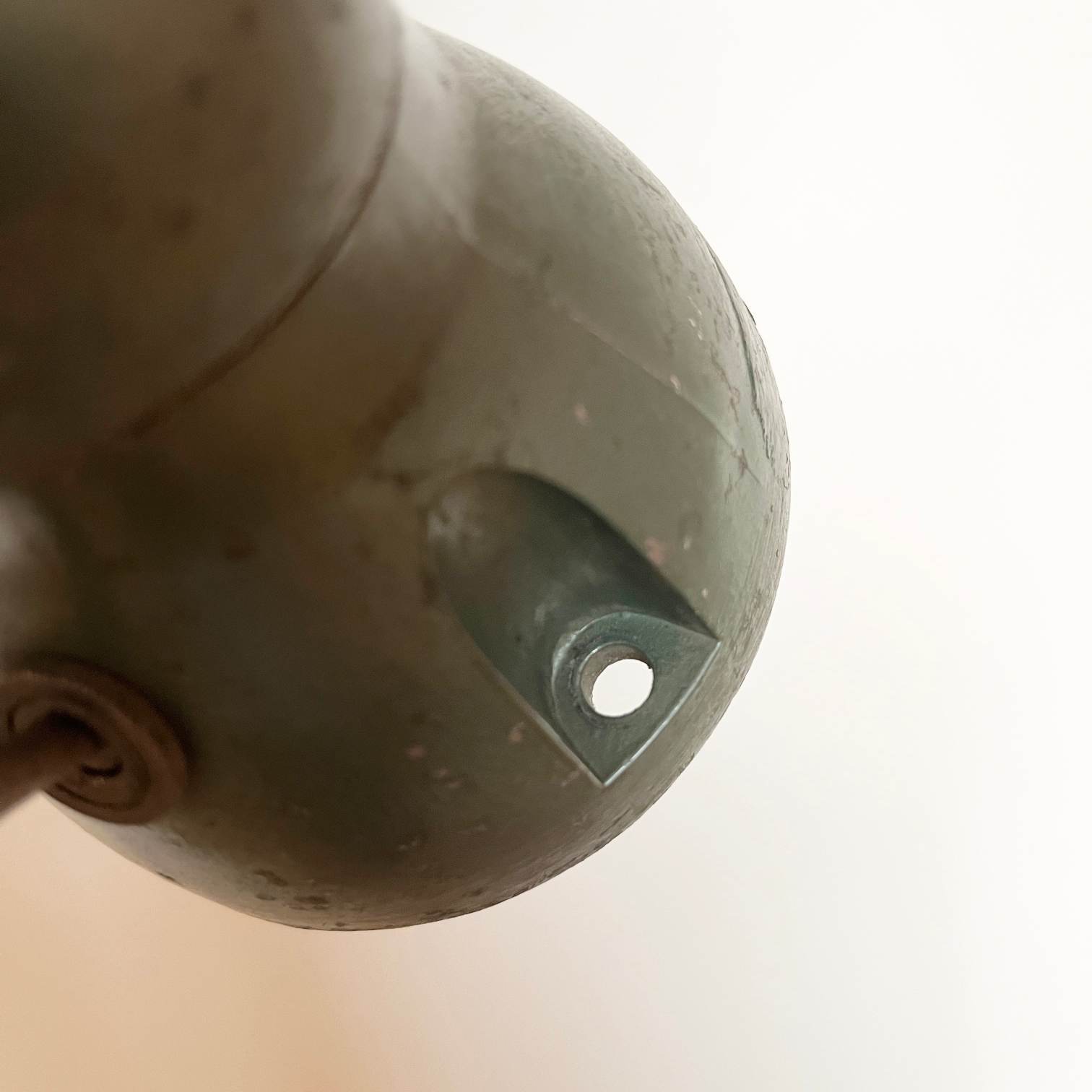 Alte original Jieldé Leuchte mit zwei Gelenkarmen: Ein wahres Kultobjekt des französischen Industrial-Designs! Gegen Ende der 1940er Jahre war Jean-Louis Domecq die Suche nach einer geeigneten Lampe für seine Werkstatt leid und er beschloss, seine eigene Lampe zu entwerfen. Sie sollte schlicht, robust und schwenkbar sein. Für eine perfekte Optik wird die gesamte Stromversorgung durch Verbindungen im Inneren der Arme und Gelenke sichergestellt und bleibt so vollständig unsichtbar. Dank der Kombination aus Gelenkarm und verstellbarem Lampenschirm lässt sich das Licht präzise an genau den richtigen Ort lenken. Patina: Originales Stück mit sichtbaren Spuren der Zeit Modell: Jieldé Wandlampe "Signal" mit zwei Gelenkarmen Farbe: Industriegrün Material: Metall (original Lack) Fassung: Original E27 Fassung Maße: Sockel ca. 10 cm Höhe und Ø 9 cm / je Gelenkarm Länge 40 cm / Reflektorschirm Länge ca. 23 cm, Ø (ohne Ring) 15 cm Ihr könnt die Jieldé nach folgenden Möglichkeiten montieren (der Sockel wird jeweils direkt auf den Untergrund geschraubt, Schrauben sind nicht im Lieferumfang enthalten). Das passende Textilkabel bekommt ihr bei uns im Shop. Als Wandlampe: Der Stromanschluss kommt direkt aus der Wand. Als Tischlampe: Der Stromanschluss kommt durch ein Loch im Tisch. Da es sich bei dem Angebot um gebrauchte Antiquitäten handelt, unterliegen die Produkte gem. § 25a UStG der Differenzbesteuerung. Somit ist für diese Artikel kein gesonderter Umsatzsteuerausweis möglich.