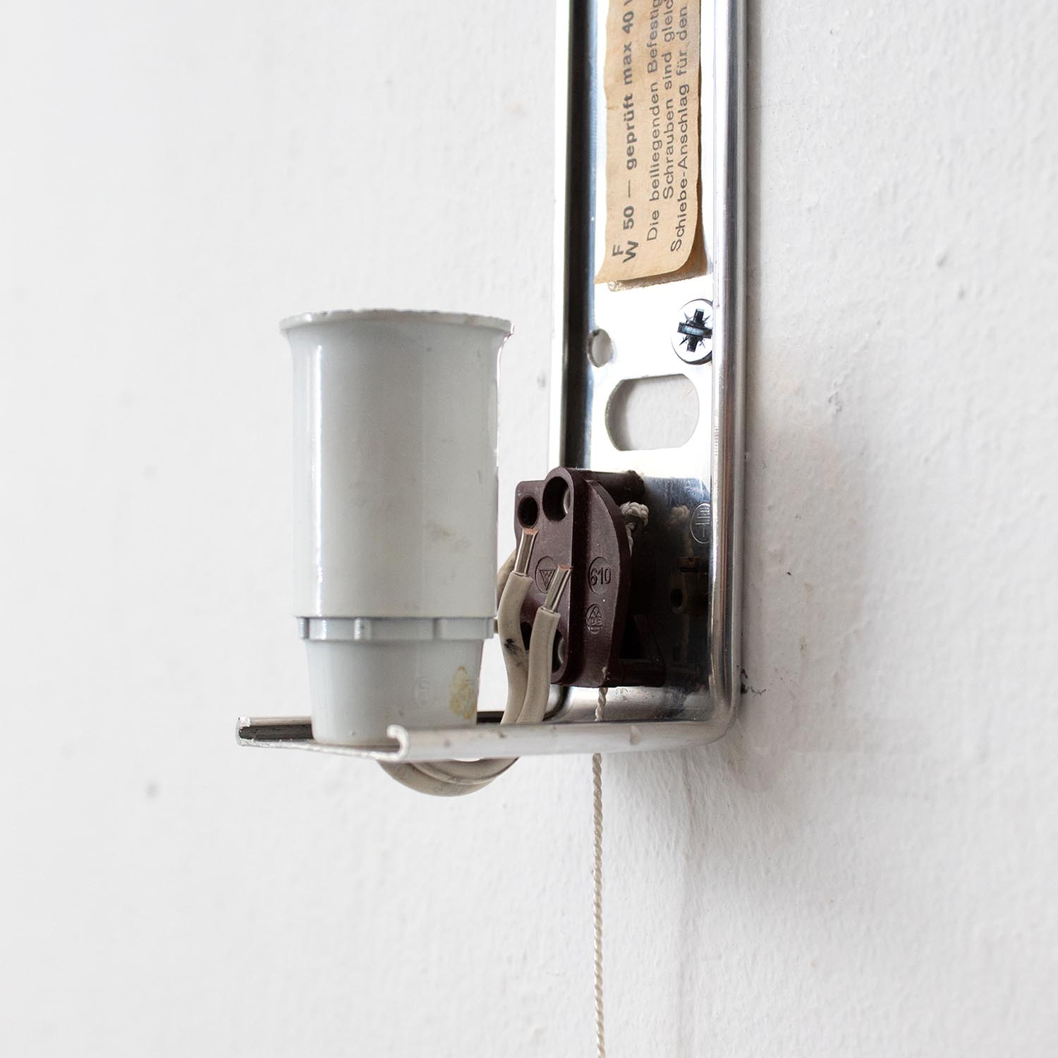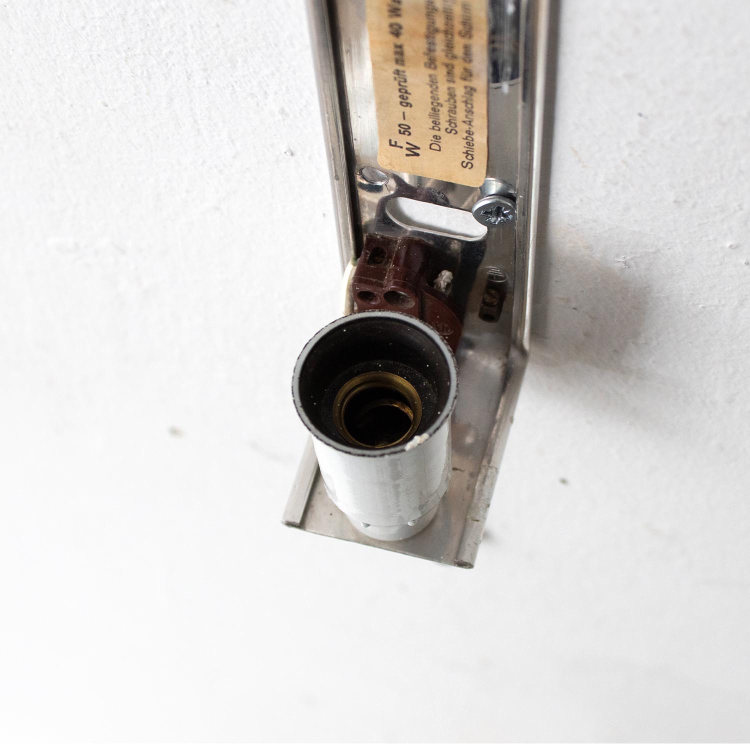 Deine DIY vintage Wandleuchte stammt aus der Mitte des letzten Jahrtausends. Wir vermuten die Halterungen waren einst mal Regalhalter - wir finden sie aber genial als DIY Wandleuchte. Durch das aufgerollte Kabel kann die Pendelleuchte durch zug auch in der Höhe verstellt werden. Für das aufgerollte Kabel sollte ca. 1 Meter gerechnet werden. Hier findest du eine Anleitung, wie du die Lampe über eine Steckdose an deinen Lieblingsplatz bringst. Patina: Sichtbare Spuren der Zeit Material: Metall verchromt Aufhängung: Direkt an der Wand Maße: Tiefe ca. 22 cm Zubehör für Bildbeispiel: Leuchtmittel, Fassung, Textilkabel, Schalter, Stecker (separat erhältlich) Da es sich bei den Industrieleuchten um gebrauchte Antiquitäten handelt, unterliegen die Produkte gem. § 25a UStG der Differenzbesteuerung. Somit ist für diese Artikel kein gesonderter Umsatzsteuerausweis möglich.