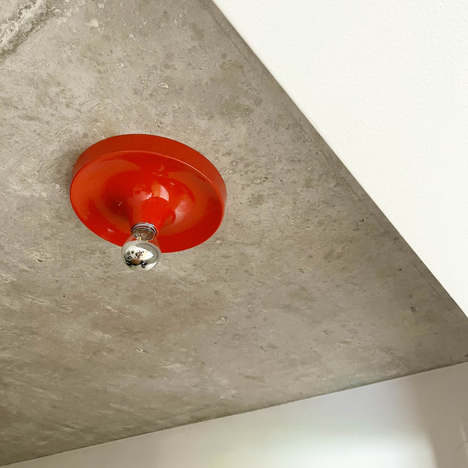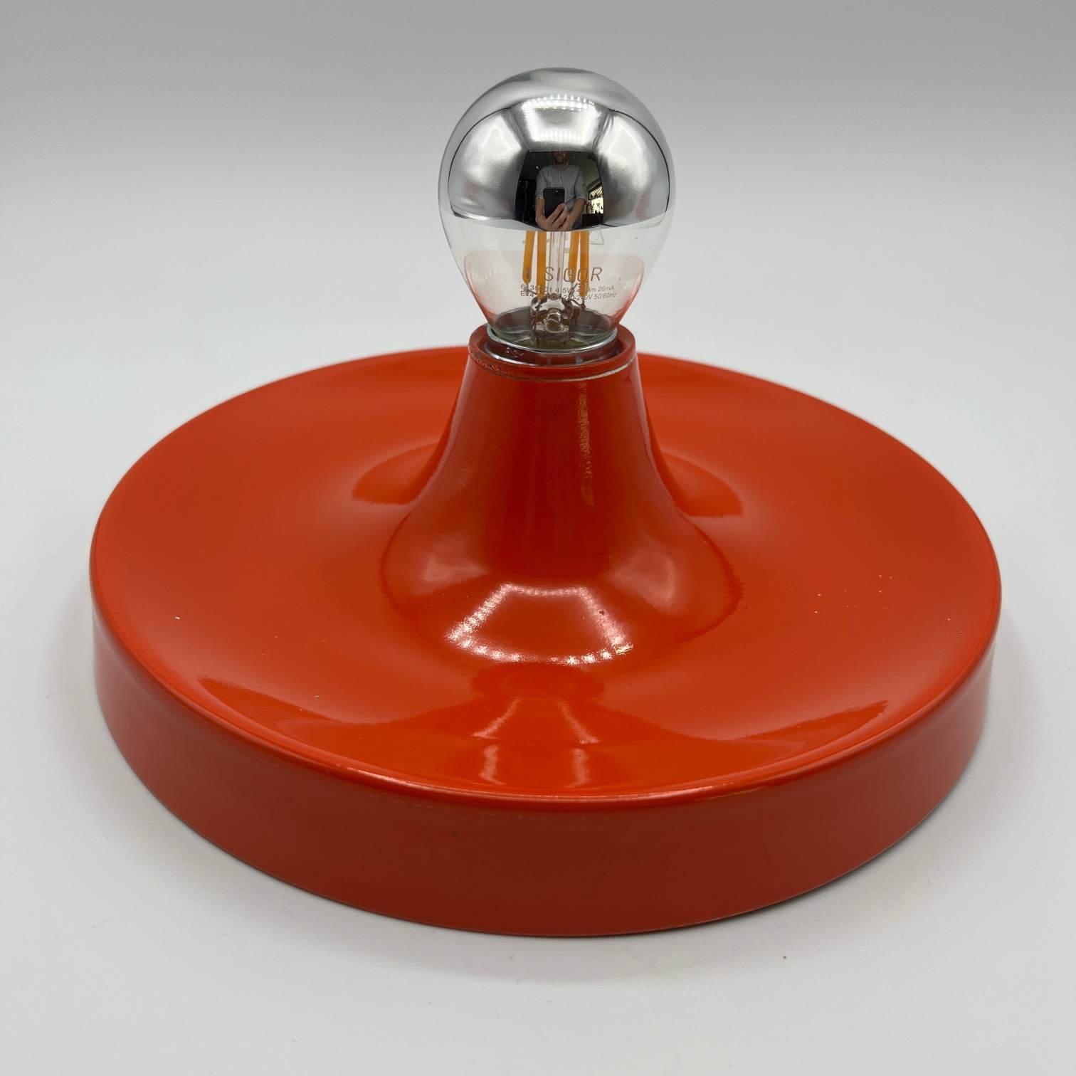 Vintage 70er Ufo Diskus Wand- oder Deckenlampe Orange 19 cm Space Age Sputnik Honsel