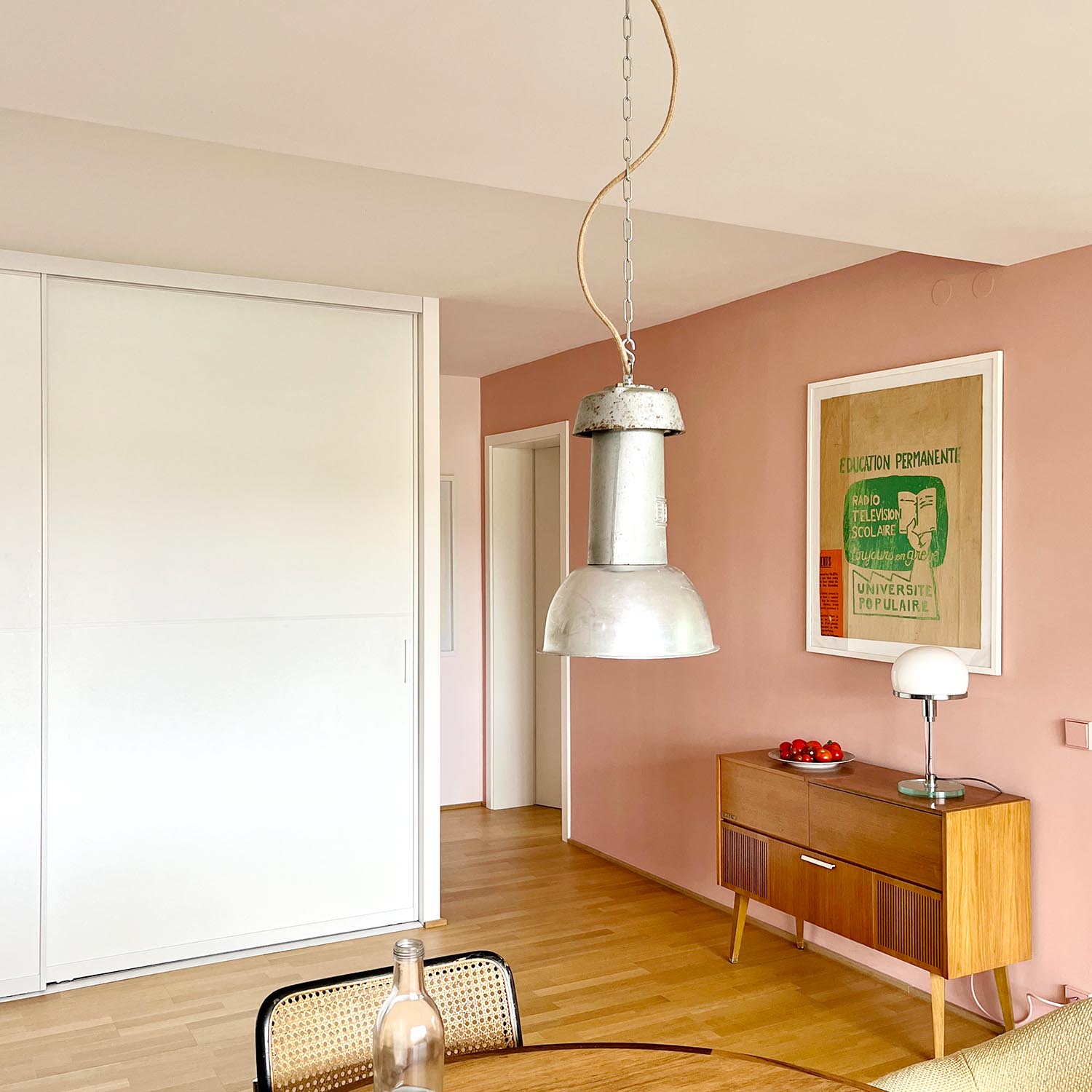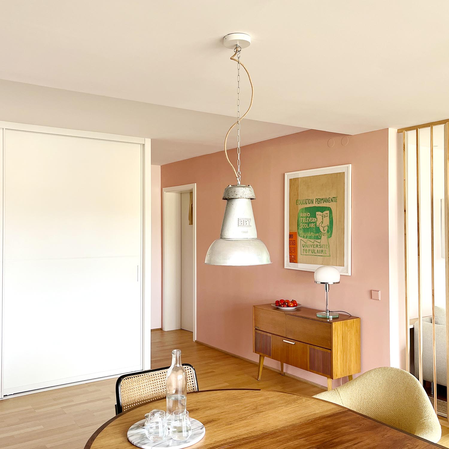 Patina: Wenige Spuren der Zeit Material: Metall Herkunft/Fundort: Frankreich, ca. 1970 Aufhängung: Direkt am Kabel Maße: Ø 22 cm, Höhe 19 cm zzgl. ca. 5 cm Fassung Fassung: E27-Fassung. Die Leuchte ist geeignet für Leuchtmittel aller Energieklassen. Glühlampen und Halogenlampen bis 60 Watt. Textilkabel: Länge und Farbe nach deinen Wünschen. Im Grundpreis sind 1,2 Meter Textilkabel enthalten. Was haben wir mit deiner Lampe gemacht?Die Lampenschirme werden sorgfältig gereinigt, dabei wird die Patina so gut es geht erhalten. Anschließend werden die Leuchten komplett neu elektrifiziert, so dass sie den aktuellen Sicherheitsstandards entsprechen.Dein individuelles Licht mit GeschichteUm die Industrielampe zum individuellen Designstück zu machen, kannst du sie mit einem bunten Textilkabel nach deinen Vorstellungen gestalten. Wähle einfach ein Kabel aus und bestimme zusätzlich die ideale Länge des Kabels anhand deiner Gegebenheiten vor Ort. Im Grundpreis sind 1.2 m Kabel enthalten. Bei der Auswahl kannst du zwischen Längen bis 5 m wählen - auf direkte Nachfrage können wir auch ein deutlich längeres Kabel anbringen. Die Lampe richtig installierenUm die Elektroinstallation an der Decke zu verdecken kannst du entweder einen weißen oder schwarzen Baldachin aus Hartplastik (Ø 65 mm – Höhe 67 mm) wählen - dieser ist im Preis enthalten. Weitere Baldachine (z. B. Porzellan- oder Abzweig-Baldachine) sind im Shop verfügbar. In unserem Magazin findest du eine reihe hilfreicher Tipps, auch gerade dann wenn der Stromanschluss nicht an der Stelle ist, an dem die Lampe hängen soll.Wie kommt deine Lampe zu dir?Deine restaurierte JØLG Leuchte kommt fertig angeschlossen, nach deinen individuellen Vorgaben und inkl. einer Anleitung mit Tipps & Tricks, sicher und umweltfreundlich verpackt zu dir nach Hause. Wir versenden ausschließlich mit DHL GoGreen. Im Lieferumfang sind keine Leuchtmittel enthalten. Im Shop findest du aber eine passende Auswahl an LED-Leuchtmitteln. Achte hierbei auf die passende Größe des Lampensockels (E14 oder E27).Viel Freude und Inspiration beim Auswählen und Zusammenstellen deiner Lampe wünscht dir dein Team von JØLG.*Da es sich bei den Industrieleuchten um gebrauchte Antiquitäten handelt, unterliegen die Produkte gem. § 25a UStG der Differenzbesteuerung. Somit ist für diese Artikel kein gesonderter Umsatzsteuerausweis möglich.**Die Leuchte ist geeignet für Leuchtmittel aller Energieklassen. Glühlampen und Halogenlampen bis 60 Watt.