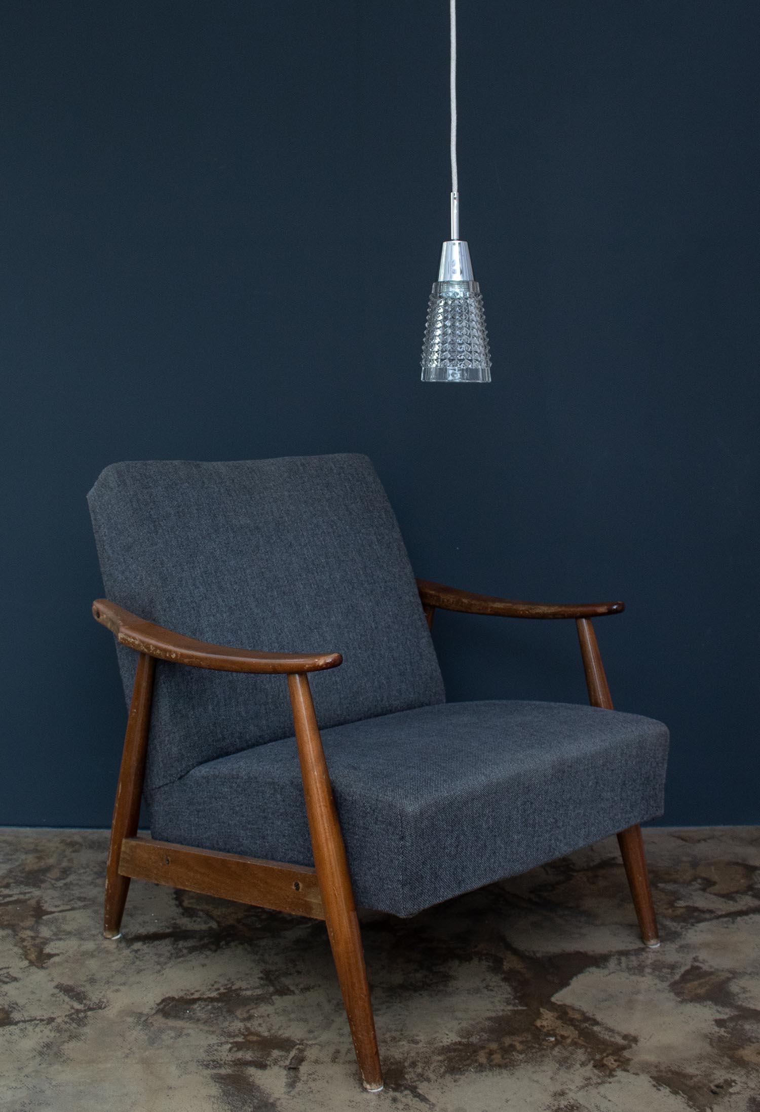 Angesagtes Spritzdekor mit schöner Patina aus den 1950er Jahren. Liebevoll restauriert schmücken diese Vintage-Lampen jetzt Küchen und Esszimmer, Flure und Wohnzimmer, Kinder- und Arbeitszimmer. So eine kleine Glasleuchte macht sich besonders gut als Spot oder Akzentlicht. Patina: Sichtbare Spuren der Zeit Material: Glas Aufhängung: Direkt am Kabel Maße: Ø 14 cm, Höhe 18 cm zzgl. ca 2 cm Fassung Fassung: E27-Fassung** Textilkabel: Länge und Farbe nach deinen Wünschen. Im Grundpreis sind 1,2 Meter Textilkabel enthalten. Was haben wir mit deiner Lampe gemacht?Die Lampenschirme werden sorgfältig gereinigt, dabei wird die Patina so gut es geht erhalten. Anschließend werden die Leuchten komplett neu elektrifiziert, so dass sie den aktuellen Sicherheitsstandards entsprechen.Dein individuelles Licht mit GeschichteUm die Industrielampe zum individuellen Designstück zu machen, kannst du sie mit einem bunten Textilkabel nach deinen Vorstellungen gestalten. Wähle einfach ein Kabel aus und bestimme zusätzlich die ideale Länge des Kabels anhand deiner Gegebenheiten vor Ort. Im Grundpreis sind 1.2 m Kabel enthalten. Bei der Auswahl kannst du zwischen Längen bis 5 m wählen - auf direkte Nachfrage können wir auch ein deutlich längeres Kabel anbringen. Die Lampe richtig installierenUm die Elektroinstallation an der Decke zu verdecken kannst du entweder einen weißen oder schwarzen Baldachin aus Hartplastik (Ø 65 mm – Höhe 67 mm) wählen - dieser ist im Preis enthalten. Weitere Baldachine (z. B. Porzellan- oder Abzweig-Baldachine) sind im Shop verfügbar. In unserem Magazin findest du eine reihe hilfreicher Tipps, auch gerade dann wenn der Stromanschluss nicht an der Stelle ist, an dem die Lampe hängen soll.Wie kommt deine Lampe zu dir?Deine restaurierte JØLG Leuchte kommt fertig angeschlossen, nach deinen individuellen Vorgaben und inkl. einer Anleitung mit Tipps & Tricks, sicher und umweltfreundlich verpackt zu dir nach Hause. Wir versenden ausschließlich mit DHL GoGreen. Im Lieferumfang sind keine Leuchtmittel enthalten. Im Shop findest du aber eine passende Auswahl an LED-Leuchtmitteln. Achte hierbei auf die passende Größe des Lampensockels (E14 oder E27).Viel Freude und Inspiration beim Auswählen und Zusammenstellen deiner Lampe wünscht dir dein Team von JØLG.*Da es sich bei den Industrieleuchten um gebrauchte Antiquitäten handelt, unterliegen die Produkte gem. § 25a UStG der Differenzbesteuerung. Somit ist für diese Artikel kein gesonderter Umsatzsteuerausweis möglich.**Die Leuchte ist geeignet für Leuchtmittel aller Energieklassen. Glühlampen und Halogenlampen bis 60 Watt.