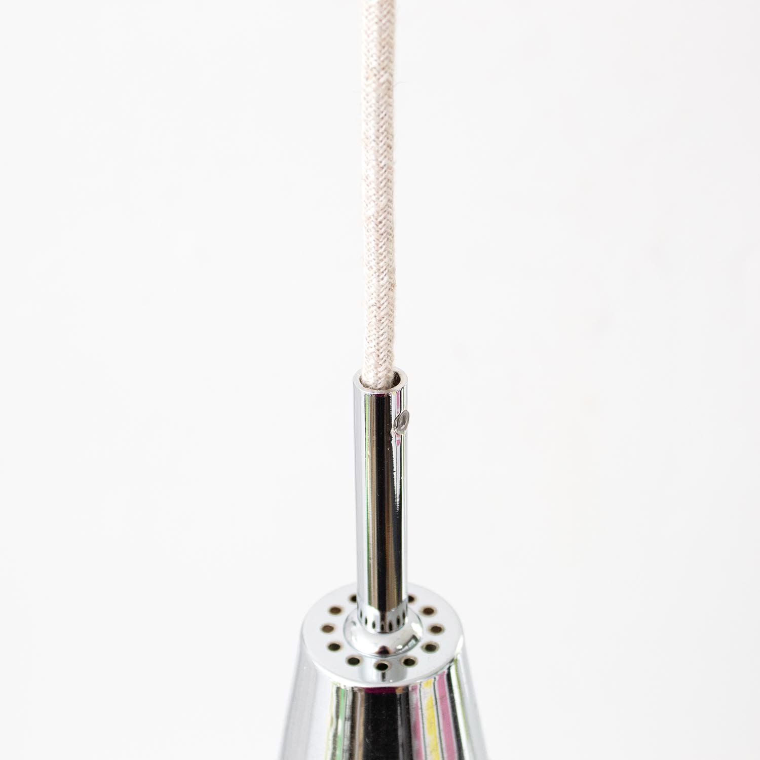 Um die Elektroinstallation an der Decke zu verdecken kannst du entweder einen weißen oder schwarzen Baldachin aus Hartplastik (Ø 65 mm – Höhe 67 mm) wählen - dieser ist im Preis enthalten. Weitere Baldachine (z. B. Porzellan- oder Abzweig-Baldachine) sind im Shop verfügbar. In unserem Magazin findest du eine reihe hilfreicher Tipps, auch gerade dann wenn der Stromanschluss nicht an der Stelle ist, an dem die Lampe hängen soll.