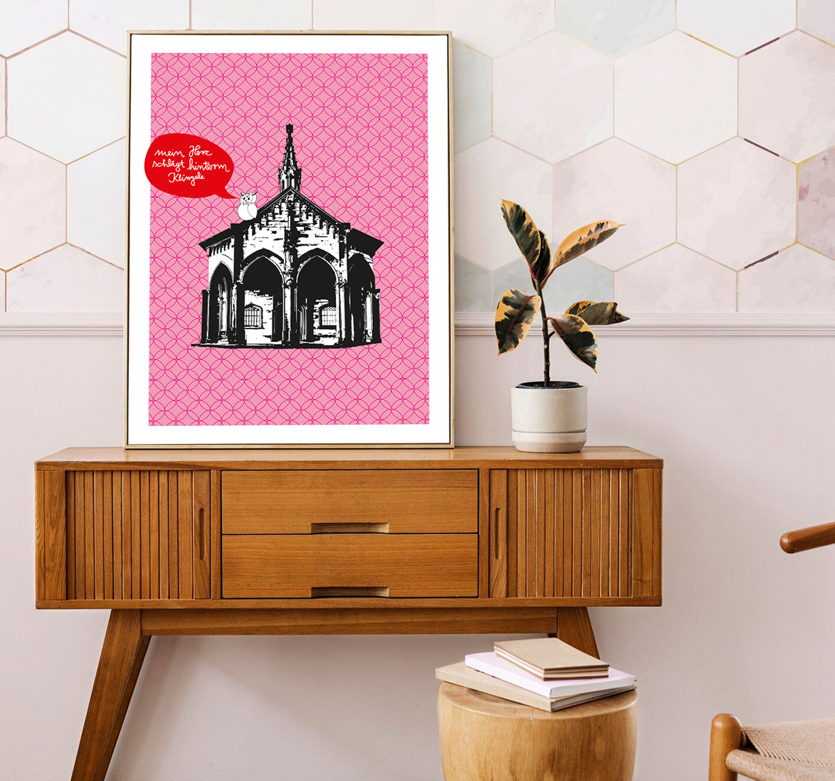 Grafikposter Klingelkapelle "Mein Herz schlägt hinterm Klingele"