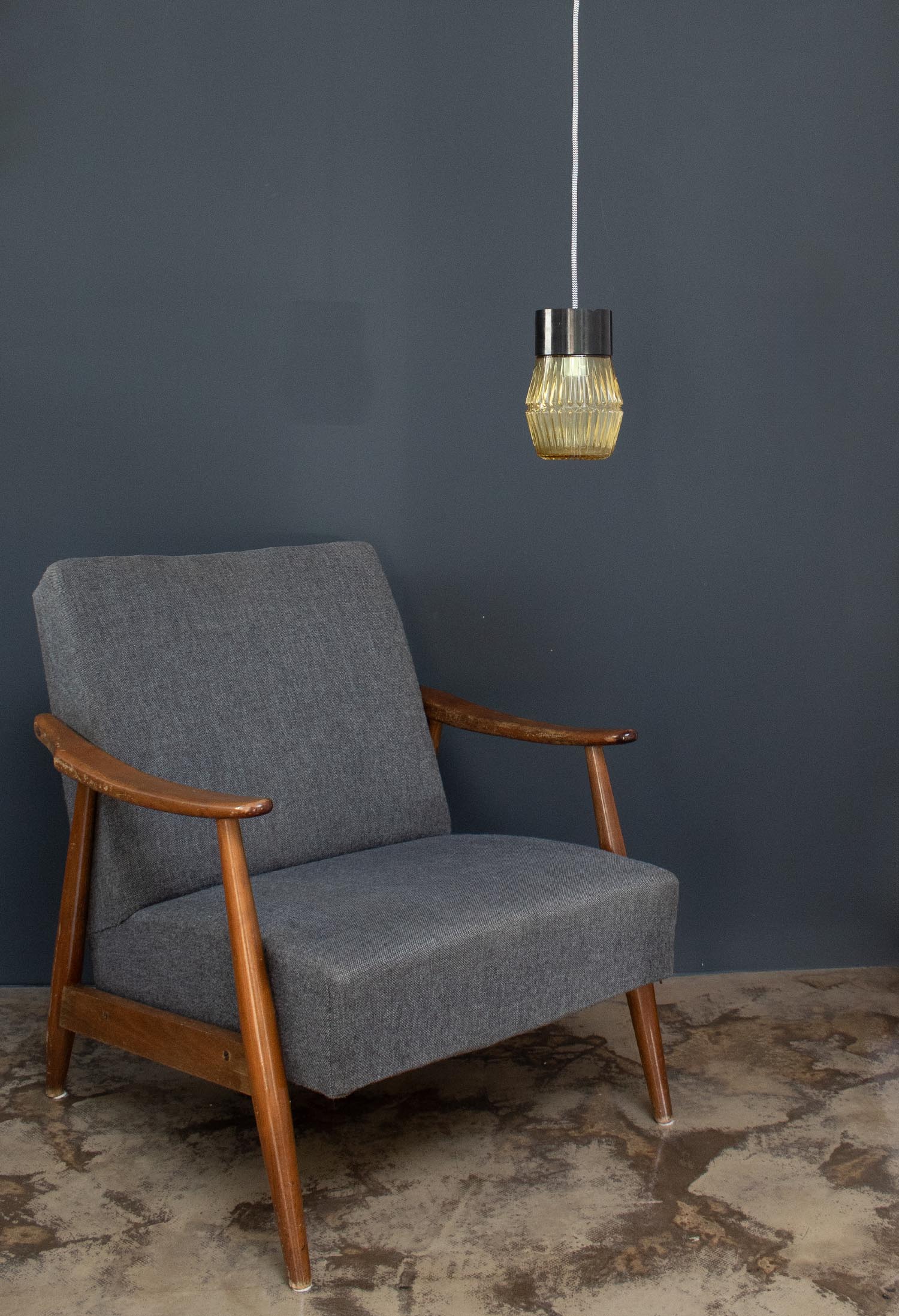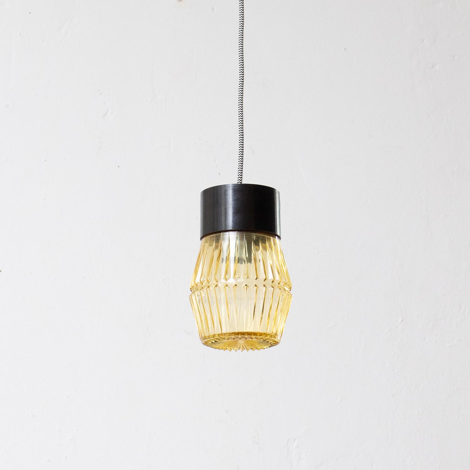 Diese raffinierte Schönheit stammt, wie all unsere JØLG-Industrieleuchten, aus Fabriken, Häusern und Werkstätten in ganz Europa. Frisch restauriert schmücken diese Vintage-Lampen jetzt Küchen und Esszimmer, Flure und Wohnzimmer, Kinder- und Arbeitszimmer. Raffinierte Kristallglasoptik und eine ansprechende Form machen diese Leuchte aus den 1960er Jahren zu einem authentischen Blickfang. Schönes Akzentlicht. Patina: Leichte Spuren der Zeit Material: Glas, Metall/Chrom Farbe: Silber/Chrom/Glas Alter/Herkunft: 1960, stammt aus dem Wohnzimmer einer alten Jugendstilvilla Aufhängung: Direkt am Kabel Maße: Ø 10 cm (unten), Höhe gesamt mit Pendelstab 28 cm Fassung: E27-Fassung** Textilkabel: Länge und Farbe nach deinen Wünschen. Im Grundpreis sind 1,2 Meter Textilkabel enthalten. Was haben wir mit deiner Lampe gemacht?Die Lampenschirme werden sorgfältig gereinigt, dabei wird die Patina so gut es geht erhalten. Anschließend werden die Leuchten komplett neu elektrifiziert, so dass sie den aktuellen Sicherheitsstandards entsprechen.Dein individuelles Licht mit GeschichteUm die Industrielampe zum individuellen Designstück zu machen, kannst du sie mit einem bunten Textilkabel nach deinen Vorstellungen gestalten. Wähle einfach ein Kabel aus und bestimme zusätzlich die ideale Länge des Kabels anhand deiner Gegebenheiten vor Ort. Im Grundpreis sind 1.2 m Kabel enthalten. Bei der Auswahl kannst du zwischen Längen bis 5 m wählen - auf direkte Nachfrage können wir auch ein deutlich längeres Kabel anbringen. Die Lampe richtig installierenUm die Elektroinstallation an der Decke zu verdecken kannst du entweder einen weißen oder schwarzen Baldachin aus Hartplastik (Ø 65 mm – Höhe 67 mm) wählen - dieser ist im Preis enthalten. Weitere Baldachine (z. B. Porzellan- oder Abzweig-Baldachine) sind im Shop verfügbar. In unserem Magazin findest du eine reihe hilfreicher Tipps, auch gerade dann wenn der Stromanschluss nicht an der Stelle ist, an dem die Lampe hängen soll.Wie kommt deine Lampe zu dir?Deine restaurierte JØLG Leuchte kommt fertig angeschlossen, nach deinen individuellen Vorgaben und inkl. einer Anleitung mit Tipps & Tricks, sicher und umweltfreundlich verpackt zu dir nach Hause. Wir versenden ausschließlich mit DHL GoGreen. Im Lieferumfang sind keine Leuchtmittel enthalten. Im Shop findest du aber eine passende Auswahl an LED-Leuchtmitteln. Achte hierbei auf die passende Größe des Lampensockels (E14 oder E27).Viel Freude und Inspiration beim Auswählen und Zusammenstellen deiner Lampe wünscht dir dein Team von JØLG.*Da es sich bei den Industrieleuchten um gebrauchte Antiquitäten handelt, unterliegen die Produkte gem. § 25a UStG der Differenzbesteuerung. Somit ist für diese Artikel kein gesonderter Umsatzsteuerausweis möglich.**Die Leuchte ist geeignet für Leuchtmittel aller Energieklassen. Glühlampen und Halogenlampen bis 60 Watt.