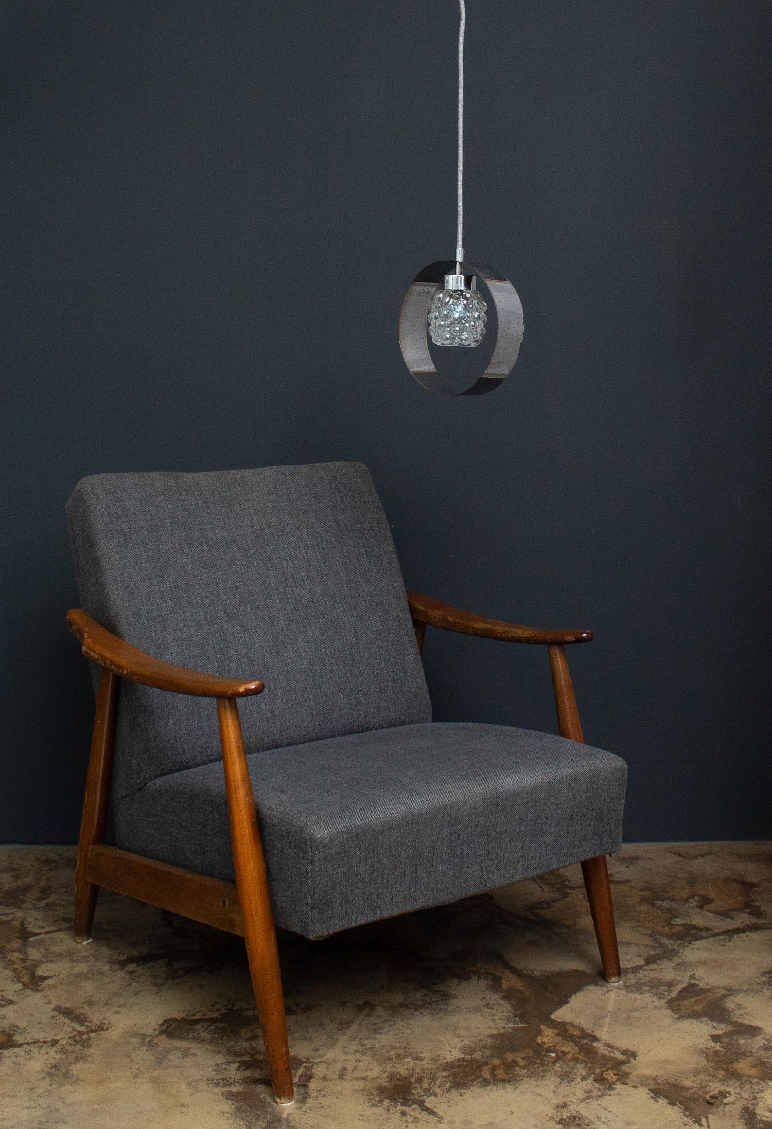 Deine einzigartige Muranoglas-Hängelampe: Original Mazzega Glas Leuchte aus Italien. Das besondere Merkmal der Glaskugeln ist die braune Färbung, welche das Licht unglaublich schön, weich und warm macht. Der Hersteller Mazzega produzierte seit 1946 in Murano bei Venedig diese Leuchte. Das Modell hier stammt aus ca. 1960. Patina: Leichte Spuren der Zeit Material: Glas / Metall Herkunft/Alter: Mazzega, ca. 1960 Aufhängung: Direkt am Kabel Maße: Ø 15 cm, Höhe 19 cm zzgl. ca 3 cm Aufhängung Fassung: E27-Fassung** Textilkabel: Länge und Farbe nach deinen Wünschen. Im Grundpreis sind 1,2 Meter Textilkabel enthalten. Was haben wir mit deiner Lampe gemacht?Die Lampenschirme werden sorgfältig gereinigt, dabei wird die Patina so gut es geht erhalten. Anschließend werden die Leuchten komplett neu elektrifiziert, so dass sie den aktuellen Sicherheitsstandards entsprechen.Dein individuelles Licht mit GeschichteUm die Industrielampe zum individuellen Designstück zu machen, kannst du sie mit einem bunten Textilkabel nach deinen Vorstellungen gestalten. Wähle einfach ein Kabel aus und bestimme zusätzlich die ideale Länge des Kabels anhand deiner Gegebenheiten vor Ort. Im Grundpreis sind 1.2 m Kabel enthalten. Bei der Auswahl kannst du zwischen Längen bis 5 m wählen - auf direkte Nachfrage können wir auch ein deutlich längeres Kabel anbringen. Die Lampe richtig installierenUm die Elektroinstallation an der Decke zu verdecken kannst du entweder einen weißen oder schwarzen Baldachin aus Hartplastik (Ø 65 mm – Höhe 67 mm) wählen - dieser ist im Preis enthalten. Weitere Baldachine (z. B. Porzellan- oder Abzweig-Baldachine) sind im Shop verfügbar. In unserem Magazin findest du eine reihe hilfreicher Tipps, auch gerade dann wenn der Stromanschluss nicht an der Stelle ist, an dem die Lampe hängen soll.Wie kommt deine Lampe zu dir?Deine restaurierte JØLG Leuchte kommt fertig angeschlossen, nach deinen individuellen Vorgaben und inkl. einer Anleitung mit Tipps & Tricks, sicher und umweltfreundlich verpackt zu dir nach Hause. Wir versenden ausschließlich mit DHL GoGreen. Im Lieferumfang sind keine Leuchtmittel enthalten. Im Shop findest du aber eine passende Auswahl an LED-Leuchtmitteln. Achte hierbei auf die passende Größe des Lampensockels (E14 oder E27).Viel Freude und Inspiration beim Auswählen und Zusammenstellen deiner Lampe wünscht dir dein Team von JØLG.*Da es sich bei den Industrieleuchten um gebrauchte Antiquitäten handelt, unterliegen die Produkte gem. § 25a UStG der Differenzbesteuerung. Somit ist für diese Artikel kein gesonderter Umsatzsteuerausweis möglich.**Die Leuchte ist geeignet für Leuchtmittel aller Energieklassen. Glühlampen und Halogenlampen bis 60 Watt.