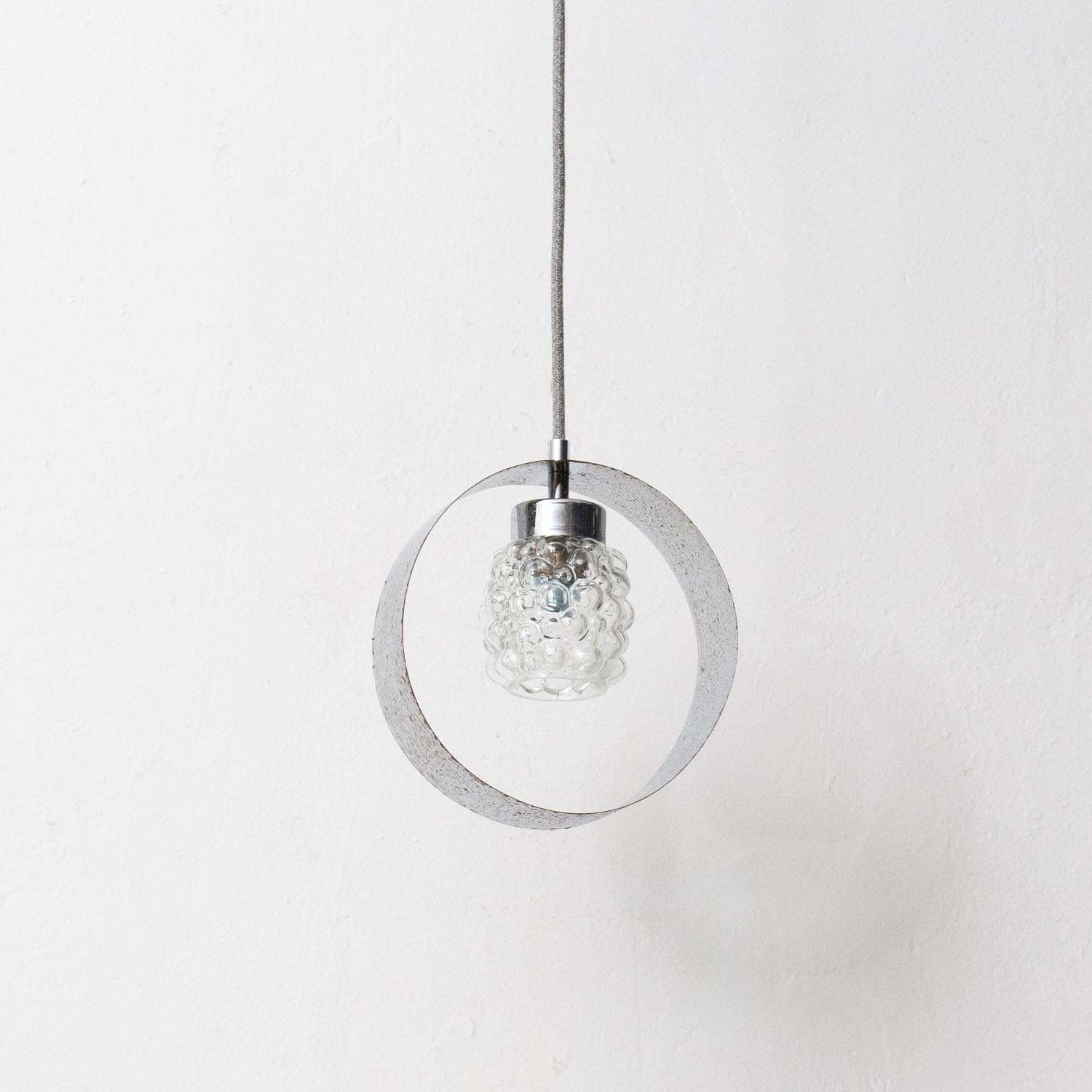 Vintage midcentury Glas Hängelampe Bubbles mit Chromring Ø 20 cm