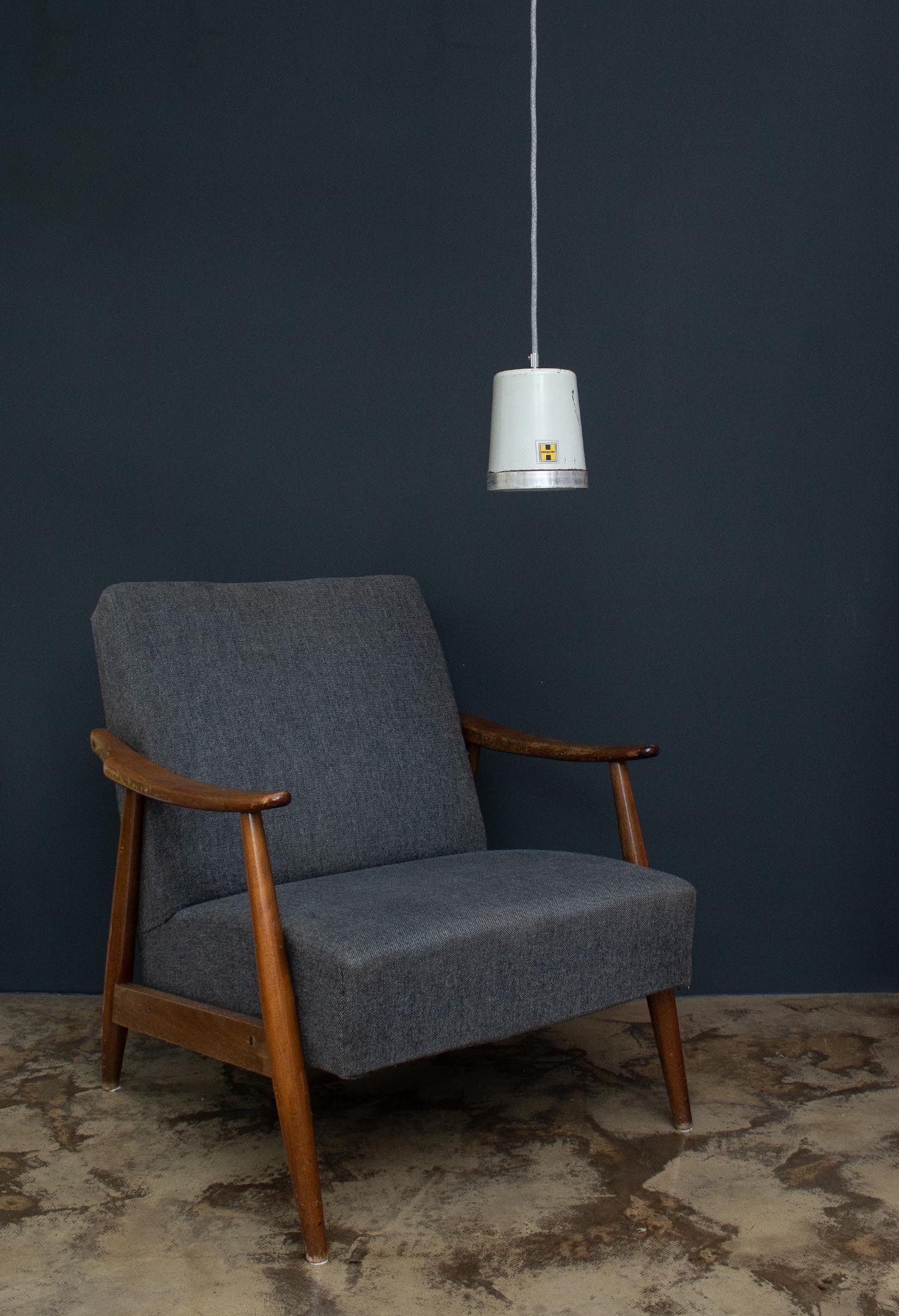 Diese Lampen wurden ursprünglich zur Beleuchtung von Montagehallen und Werkstätten konzipiert, so sorgten Sie ursprünglich für eine gleichmäßige Ausleuchtung von Arbeistbereichen. Durch die weiße Emaillierung im inneren der Leuchte wird dieser Effekt nochmals verstärkt. Jeder Lampenschirm ist ein Unikat und weist eine unverwechselbare Patina auf. Patina: Sichtbare Spuren der Zeit Material: Emailliertes Metall, Kopf aus Eisen Farbe: Außen Weiß, Innen Weiß Fundort/Herkunft: Ungarn, ca. 1950 Aufhängung: An einer Rundstahlkette Maße: Ø 36,5 cm, Höhe 23 cm zzgl. 3 cm Aufhängung Fassung: E27-Fassung** Textilkabel | Kette: Länge und Kabelfarbe nach deinen Wünschen. Im Grundpreis sind 1,0 Meter Rundstahlkette und 1,2 Meter Textilkabel enthalten. Was haben wir mit deiner Lampe gemacht?Die Lampenschirme werden sorgfältig gereinigt, dabei wird die Patina so gut es geht erhalten. Anschließend werden die Leuchten komplett neu elektrifiziert, so dass sie den aktuellen Sicherheitsstandards entsprechen.Dein individuelles Licht mit GeschichteUm die Industrielampe zum individuellen Designstück zu machen, kannst du sie mit einem bunten Textilkabel nach deinen Vorstellungen gestalten. Wähle einfach ein Kabel aus und bestimme zusätzlich die ideale Länge des Kabels anhand deiner Gegebenheiten vor Ort. Im Grundpreis sind 1.2 m Kabel enthalten. Bei der Auswahl kannst du zwischen Längen bis 5 m wählen - auf direkte Nachfrage können wir auch ein deutlich längeres Kabel anbringen. Die Lampe richtig installierenUm die Elektroinstallation an der Decke zu verdecken kannst du entweder einen weißen oder schwarzen Baldachin aus Hartplastik (Ø 65 mm – Höhe 67 mm) wählen - dieser ist im Preis enthalten. Weitere Baldachine (z. B. Porzellan- oder Abzweig-Baldachine) sind im Shop verfügbar. In unserem Magazin findest du eine reihe hilfreicher Tipps, auch gerade dann wenn der Stromanschluss nicht an der Stelle ist, an dem die Lampe hängen soll.Wie kommt deine Lampe zu dir?Deine restaurierte JØLG Leuchte kommt fertig angeschlossen, nach deinen individuellen Vorgaben und inkl. einer Anleitung mit Tipps & Tricks, sicher und umweltfreundlich verpackt zu dir nach Hause. Wir versenden ausschließlich mit DHL GoGreen. Im Lieferumfang sind keine Leuchtmittel enthalten. Im Shop findest du aber eine passende Auswahl an LED-Leuchtmitteln. Achte hierbei auf die passende Größe des Lampensockels (E14 oder E27).Viel Freude und Inspiration beim Auswählen und Zusammenstellen deiner Lampe wünscht dir dein Team von JØLG.*Da es sich bei den Industrieleuchten um gebrauchte Antiquitäten handelt, unterliegen die Produkte gem. § 25a UStG der Differenzbesteuerung. Somit ist für diese Artikel kein gesonderter Umsatzsteuerausweis möglich.**Die Leuchte ist geeignet für Leuchtmittel aller Energieklassen. Glühlampen und Halogenlampen bis 60 Watt.