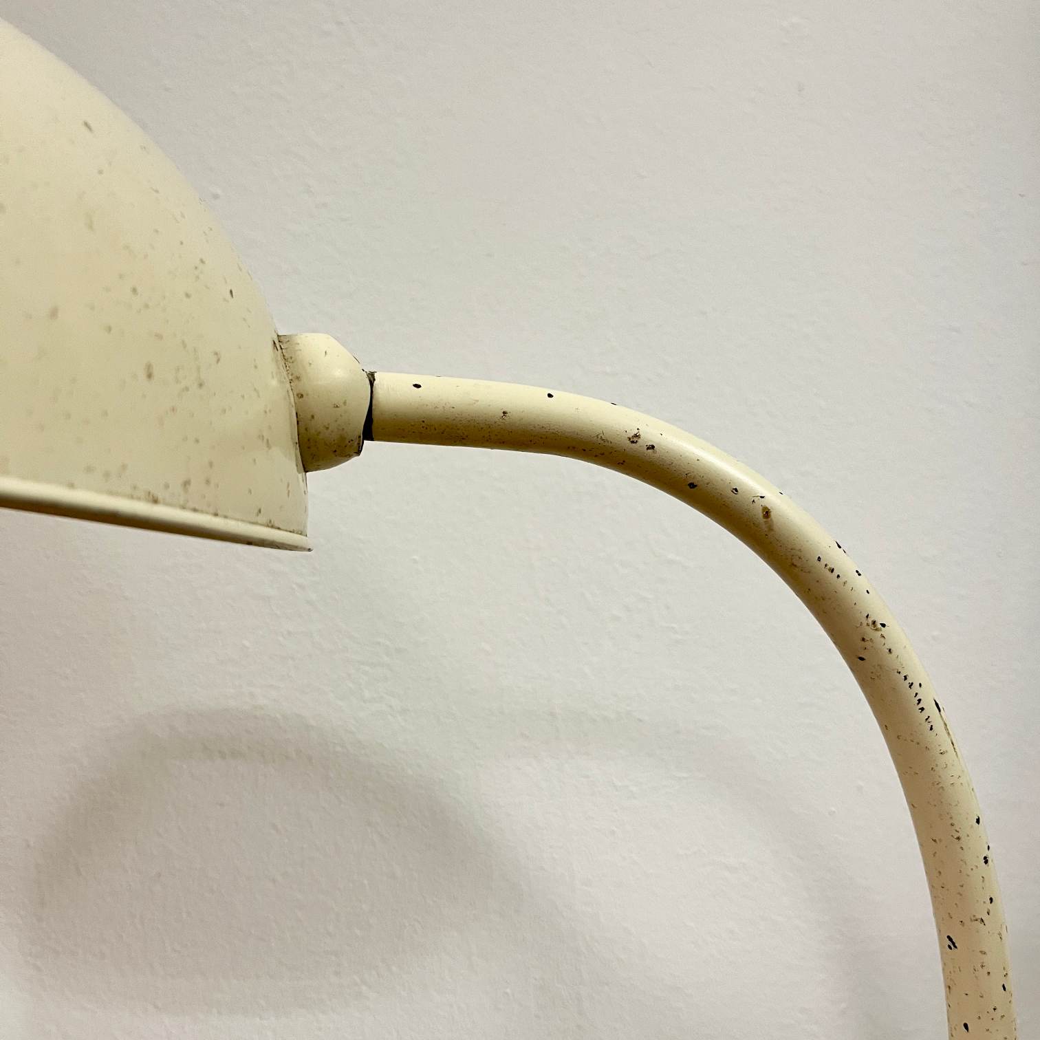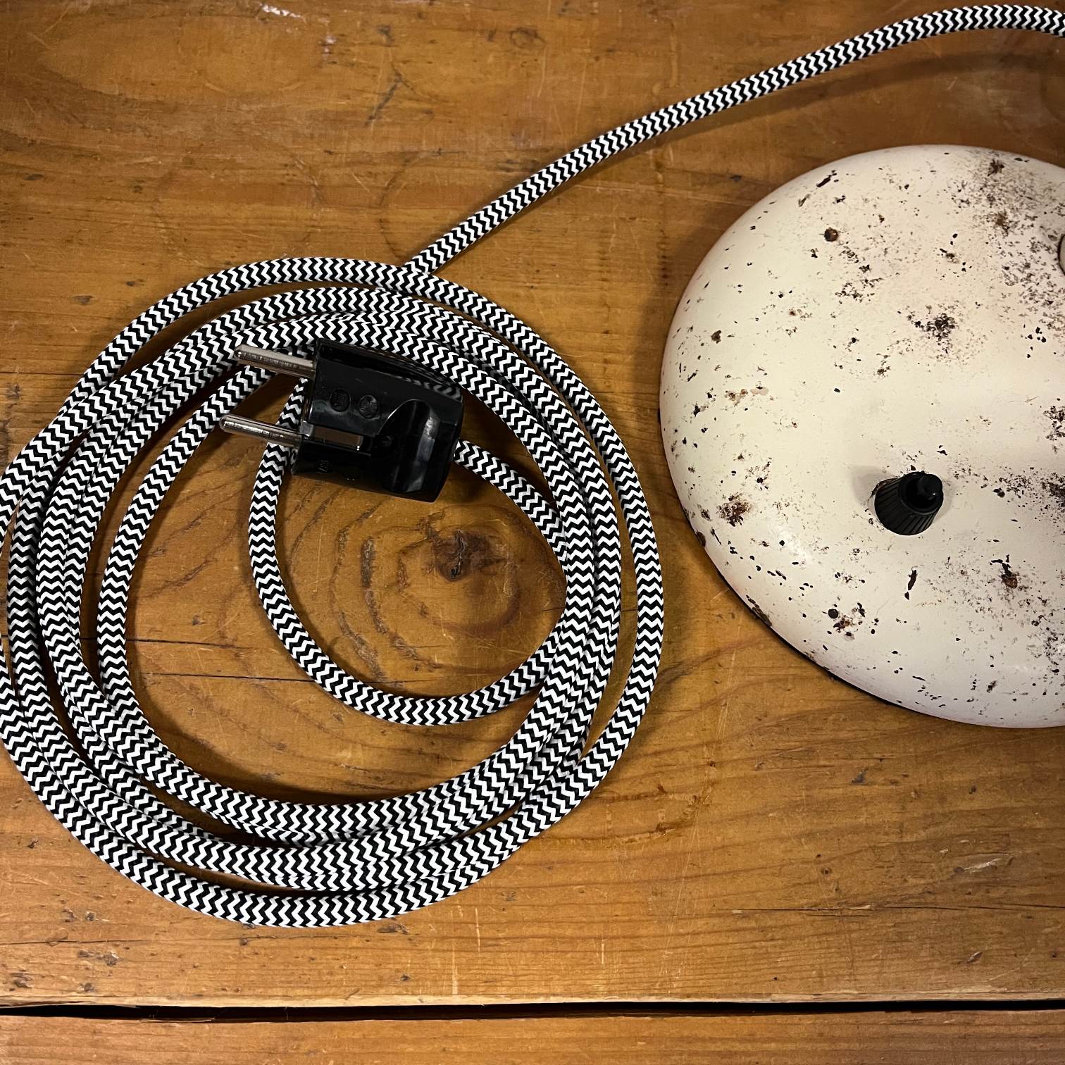 Altes Vintage Stück: Funktionales Design mit klaren Linien. Vermutlich in den 60er Jahren gefertigt, wurde sie von uns gereinigt und neu verkabelt. Sie ist jetzt mit einem schwarz-weiß gezacktem Textilkabel ausgestattet sowie mit einem Schalter und Stecker versehen. Ob auf dem Schreibtisch, dem Nachttisch oder auf dem Sideboard - diese Tischlampe ist immer ein Eyecatcher! Ein einzigartiges Stück Designgeschichte mit schöner Patina.
