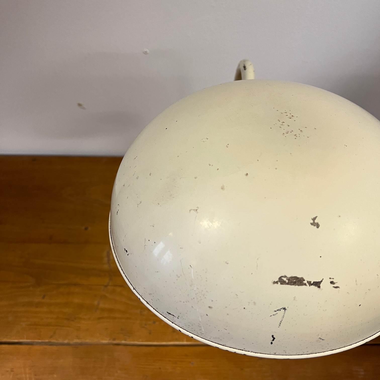 Alte original Jieldé Leuchte mit zwei Gelenkarmen: Ein wahres Kultobjekt des französischen Industrial-Designs! Gegen Ende der 1940er Jahre war Jean-Louis Domecq die Suche nach einer geeigneten Lampe für seine Werkstatt leid und er beschloss, seine eigene Lampe zu entwerfen. Sie sollte schlicht, robust und schwenkbar sein. Für eine perfekte Optik wird die gesamte Stromversorgung durch Verbindungen im Inneren der Arme und Gelenke sichergestellt und bleibt so vollständig unsichtbar. Dank der Kombination aus Gelenkarm und verstellbarem Lampenschirm lässt sich das Licht präzise an genau den richtigen Ort lenken. Patina: Originales Stück mit sichtbaren Spuren der Zeit Modell: Jieldé Wandlampe "Signal" mit zwei Gelenkarmen Farbe: Industriegrün Material: Metall (original Lack) Fassung: Original E27 Fassung Maße: Sockel ca. 10 cm Höhe und Ø 9 cm / je Gelenkarm Länge 40 cm / Reflektorschirm Länge ca. 23 cm, Ø (ohne Ring) 15 cm Ihr könnt die Jieldé nach folgenden Möglichkeiten montieren (der Sockel wird jeweils direkt auf den Untergrund geschraubt, Schrauben sind nicht im Lieferumfang enthalten). Das passende Textilkabel bekommt ihr bei uns im Shop. Als Wandlampe: Der Stromanschluss kommt direkt aus der Wand. Als Tischlampe: Der Stromanschluss kommt durch ein Loch im Tisch. Da es sich bei dem Angebot um gebrauchte Antiquitäten handelt, unterliegen die Produkte gem. § 25a UStG der Differenzbesteuerung. Somit ist für diese Artikel kein gesonderter Umsatzsteuerausweis möglich.