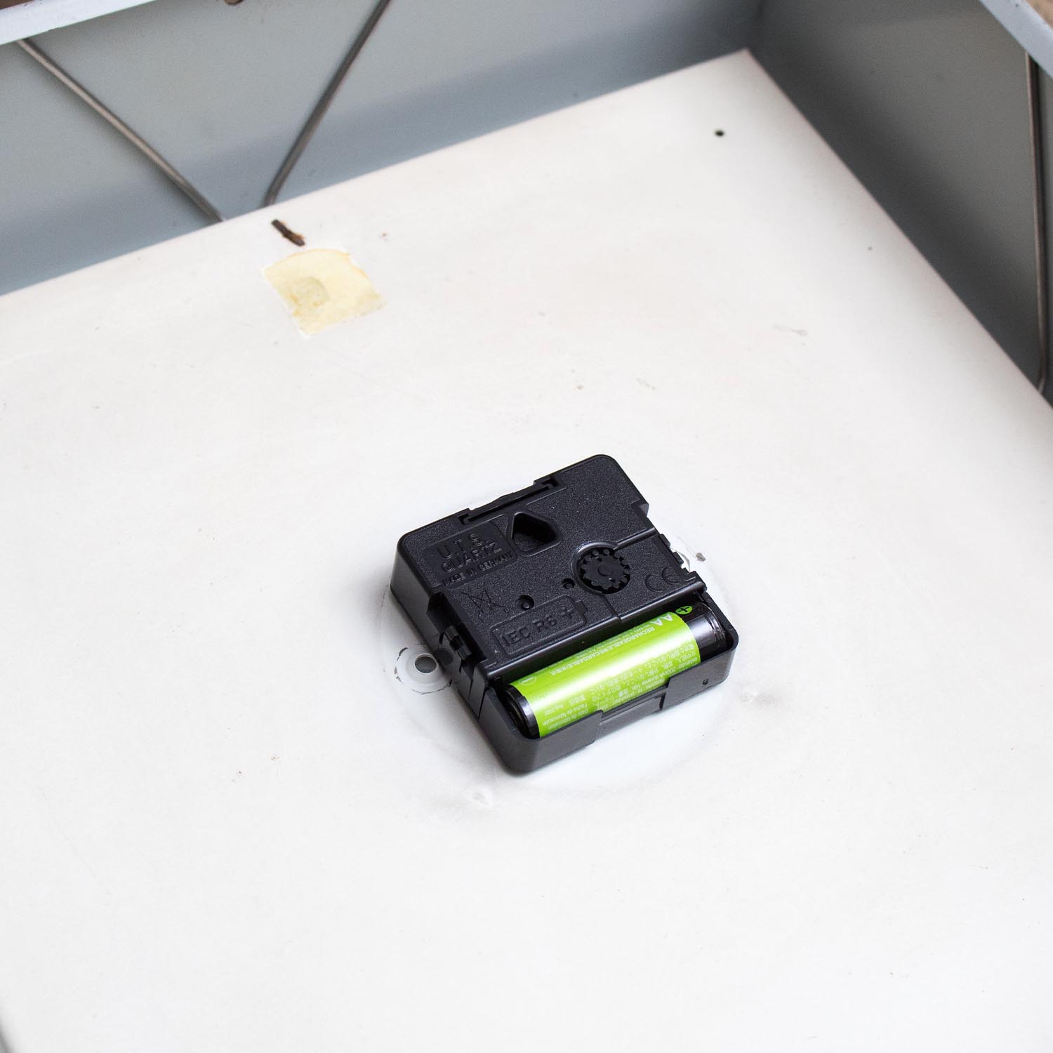 Diese alte Wanduhr war einst eine so genannte Nebenuhr und leistete ihren exakt getakteten Dienst in Fabriken, Industriebetrieben und Bahnhofshallen. Ursprünglich konnte diese Uhr (auch Slave Clock genannt) nur elektronisch mit einer Mutteruhr betrieben werden. Dies hatte den Zweck, dass wirklich jede Uhr in einer Fabrik auf die Sekunde genau gleich lief. Die vintage Wanduhr könnte deshalb in ihrem urspünglichen Zustand nicht mehr betrieben werden. Wir von JØLG haben sie deshalb mit einem Quarz-Uhrwerk umgebaut; dadurch erhält sie ein zweites Leben und kann nun mit einer normalen AA-Batterie betrieben werden. Ähnlich unserem Motto beim Restaurieren alter Industrielampen, heißt es auch hier: Alte Uhr – neue Technik!