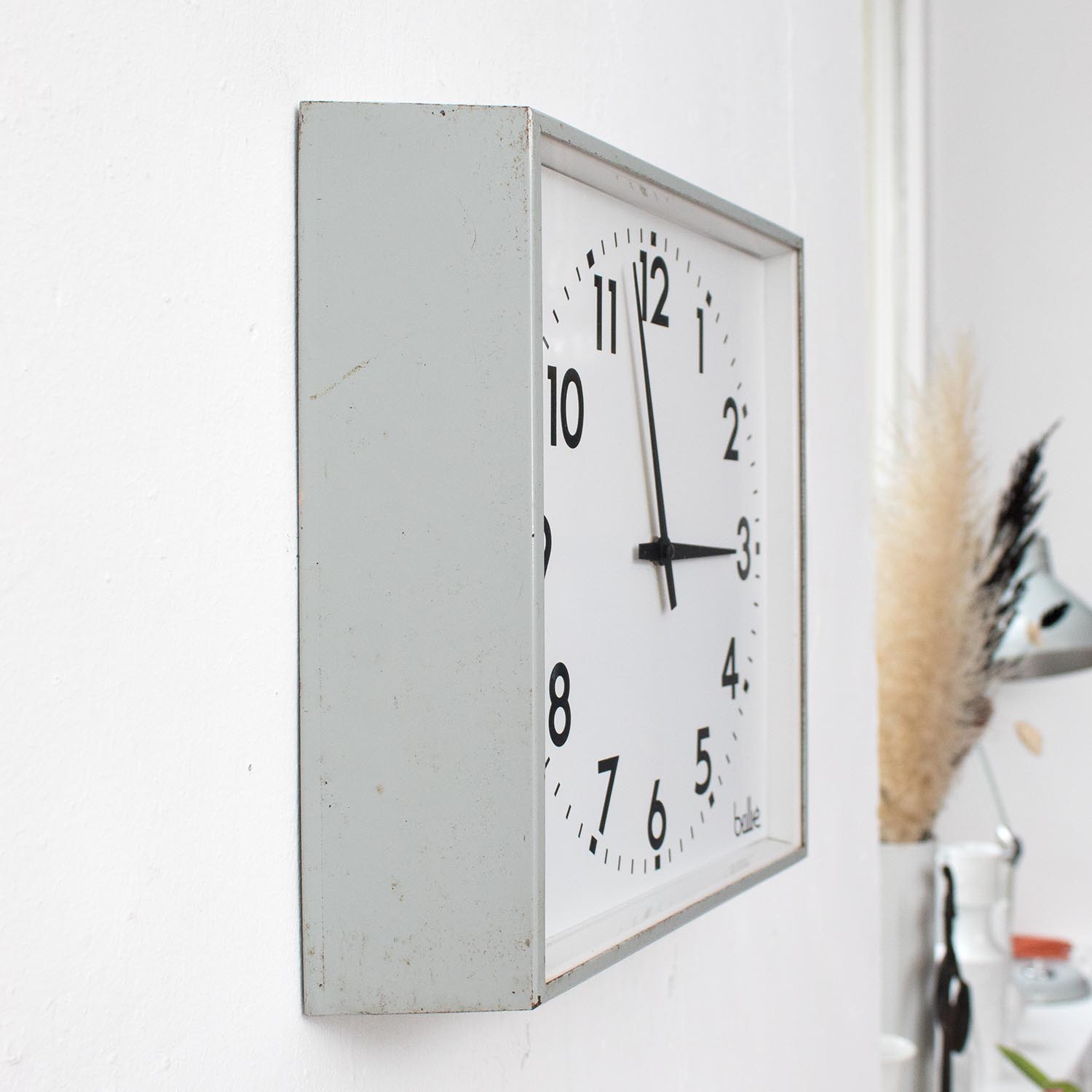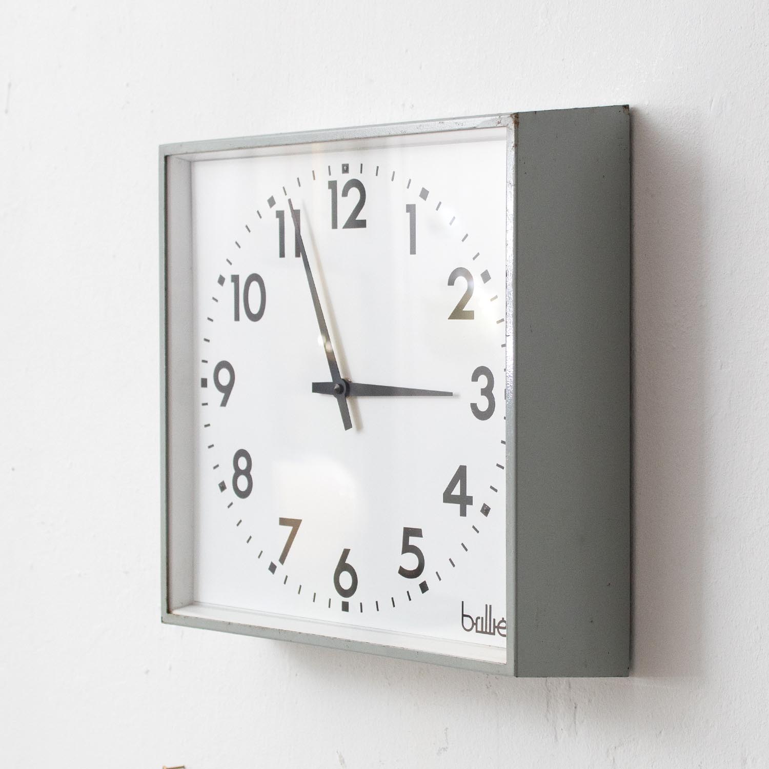 Vintage Uhr BRILLIÉ grau quadratische Fabrikuhr 33 cm Uhr aus Frankreich