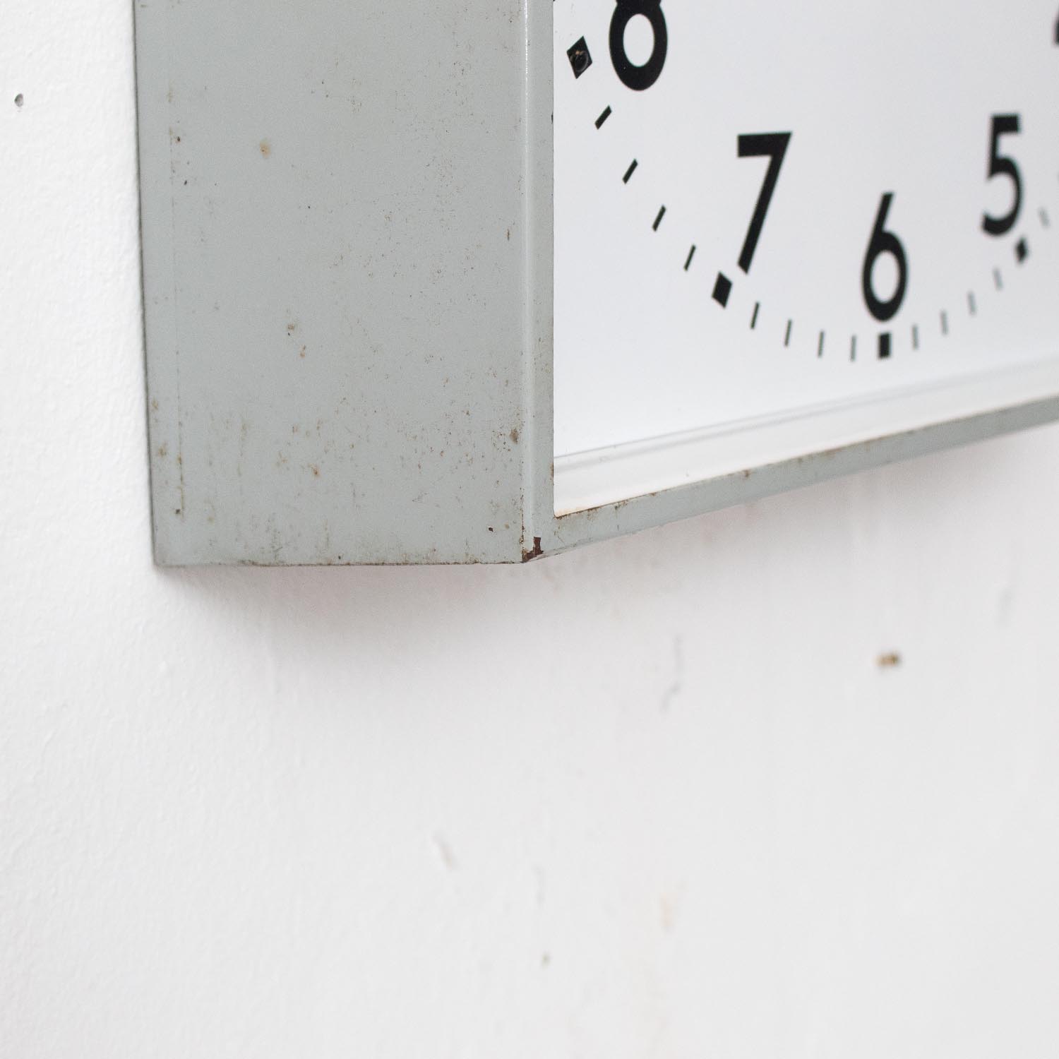 Deine einzigartige Industrie-Wanduhr: Sehr seltenes Exemplar französischer Industriekultur. In der quadartischen Ausführung sehr selten und sehr dekorativ. Durch die enorme Tiefe von knapp 10 cm und den daraus resultierenden Korpus zeigt das schöne Stück nicht nur die aktuelle Uhrzeit, sondern ist auch so ein wahres Schmuckstück an jeder Wand.